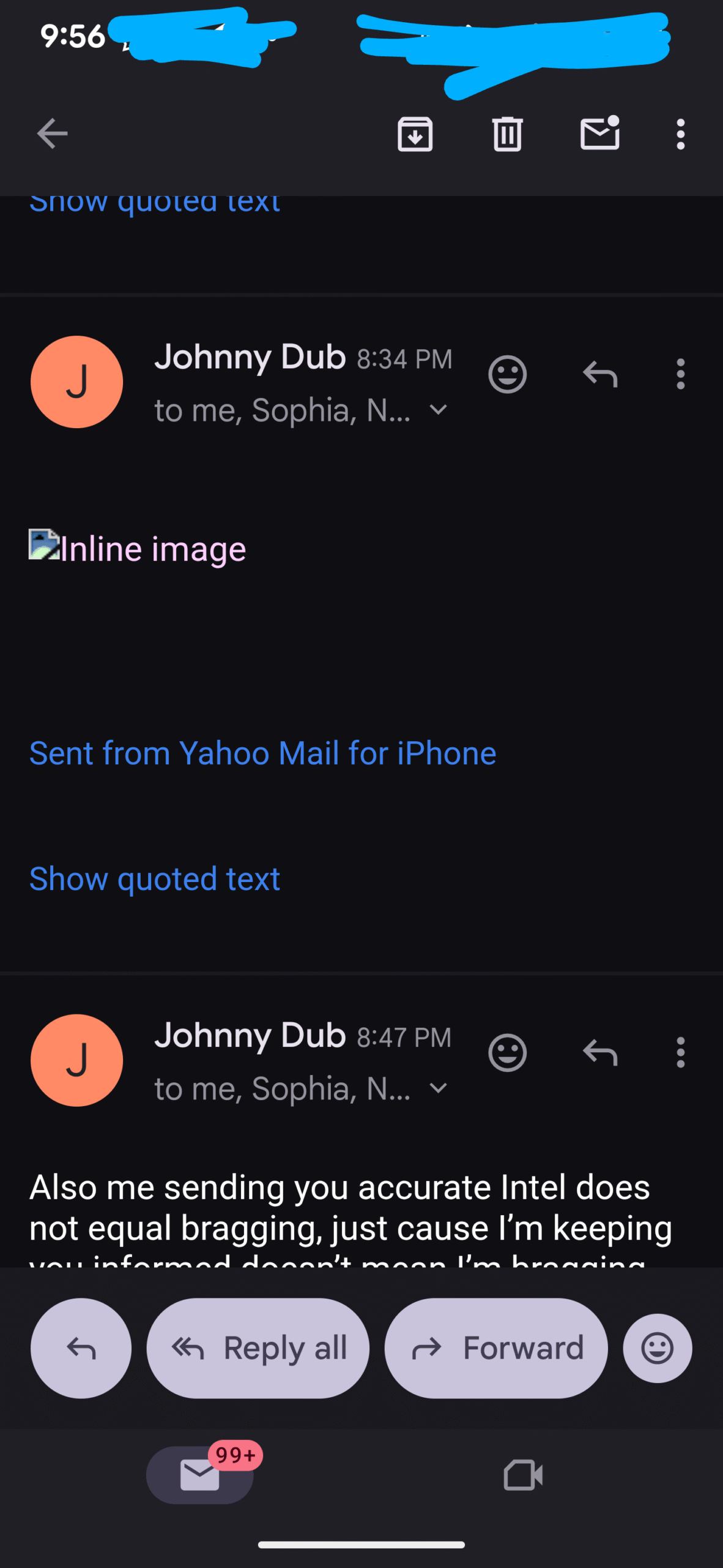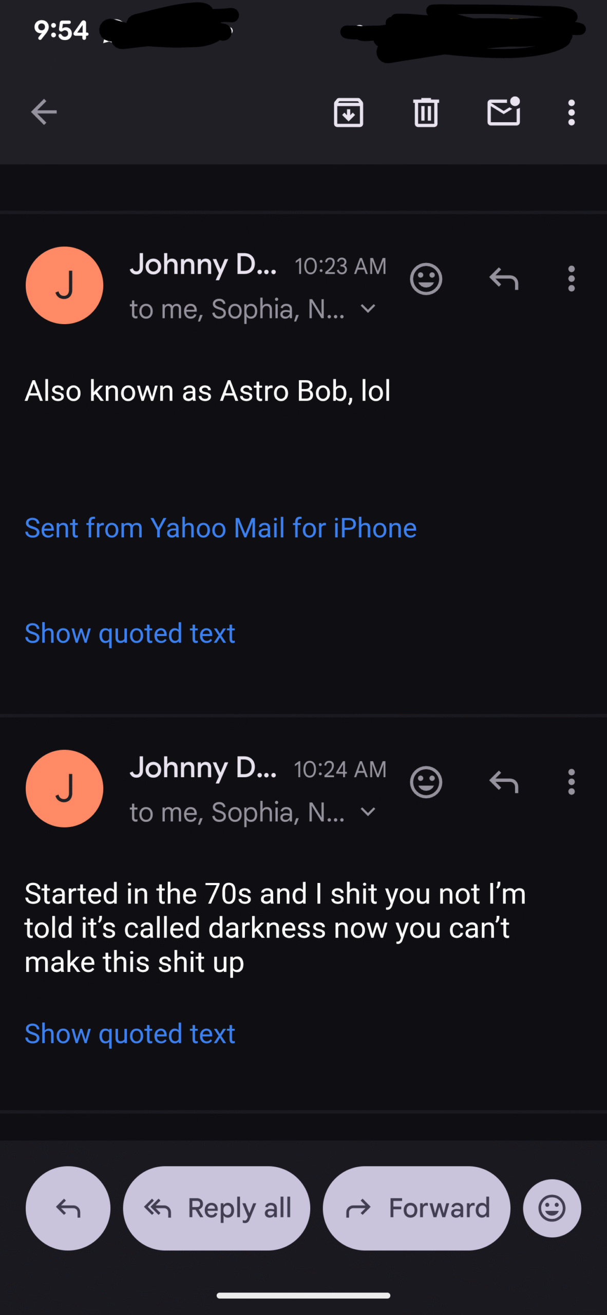 And then “Johnny Dubb” had to once again forwarded an email Thomas Schoenberger sent HIM to ME…