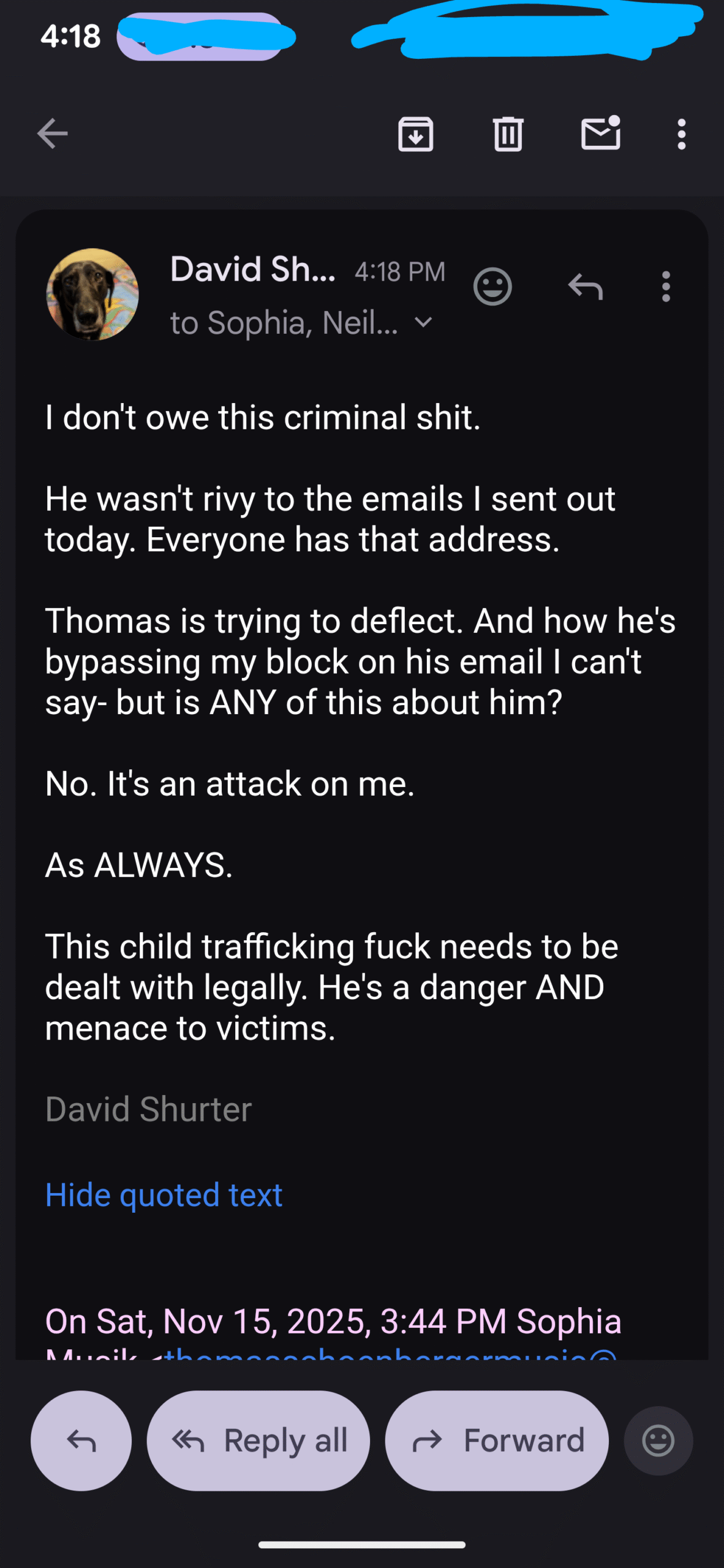 And I focus on Thomas 1). Because he never leaves me alone and sends me constant messed up emails and2). More importantly he is the HEAD of this child trafficking operation along with Michael Aquino and Gabe Hoffman.