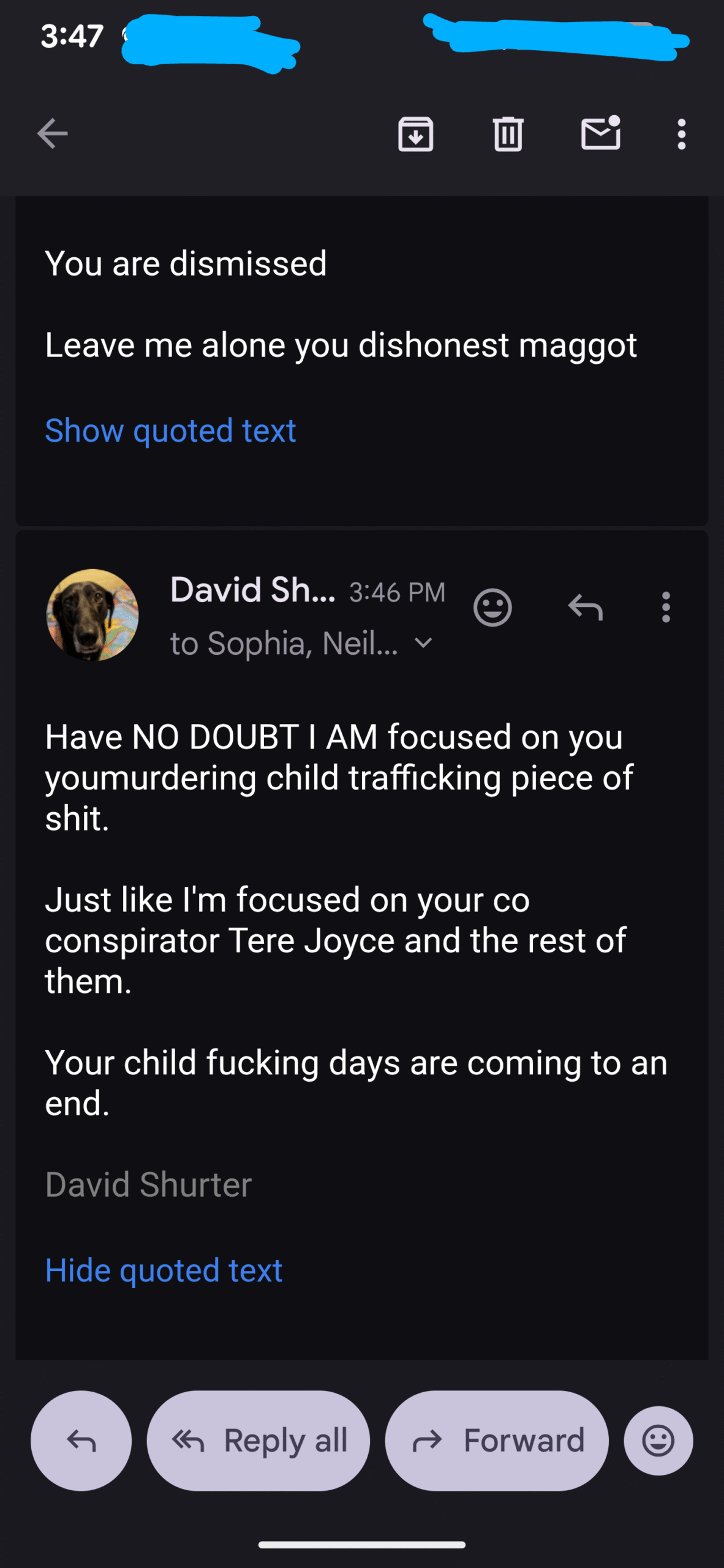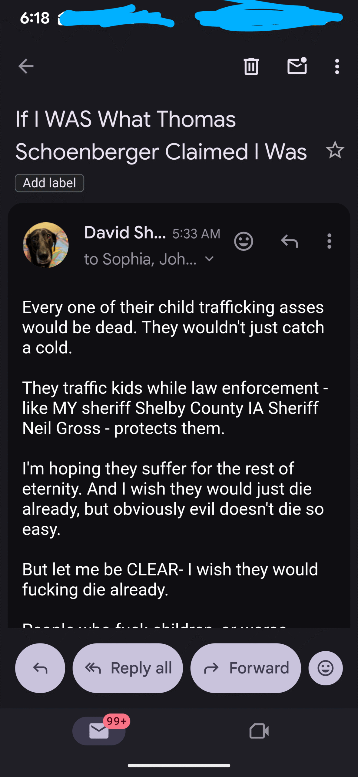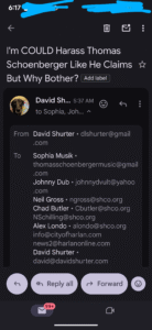 And THESE were Thomas Schoenberger’s emails, who is harassing the absolute crap out of me WITH his emails…