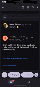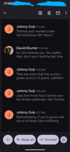 There was more but I didn’t bother to keep taking screenshots. And why I say I figure he is on a bender is THIS is what he sent me at 3 AM…
