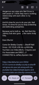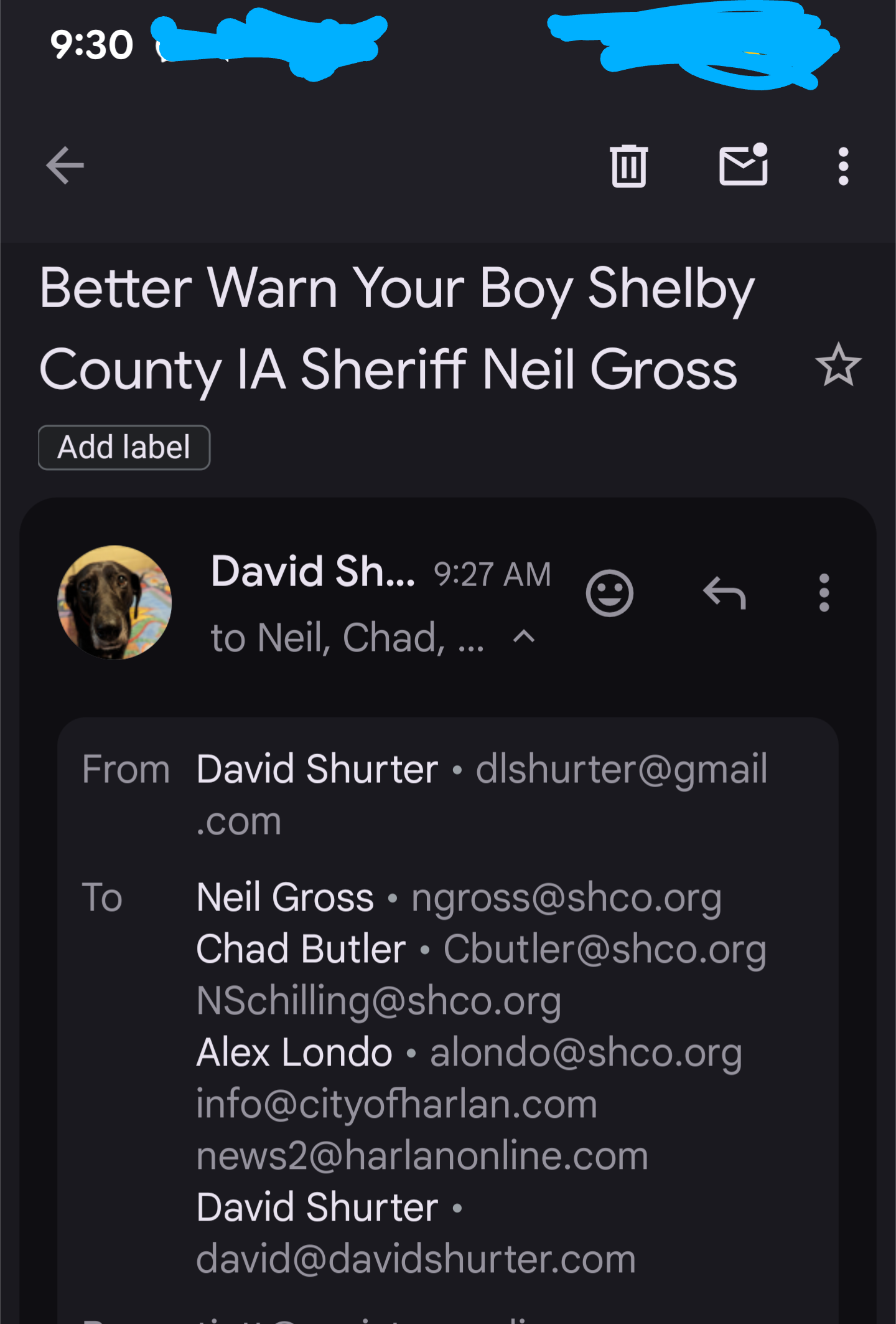 My Argument Why I Know Shelby County IA Sheriff Neil Gross Can NOT Be Trusted- with Screenshots