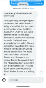 But here is Tere Joyce-who desperate to make herself out to be a victim- and this has just been in the last 16 hours…