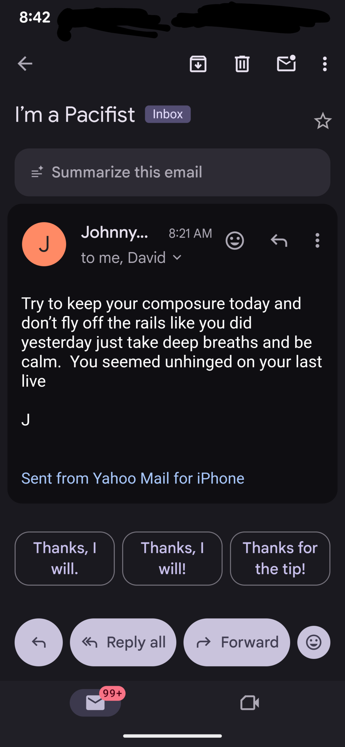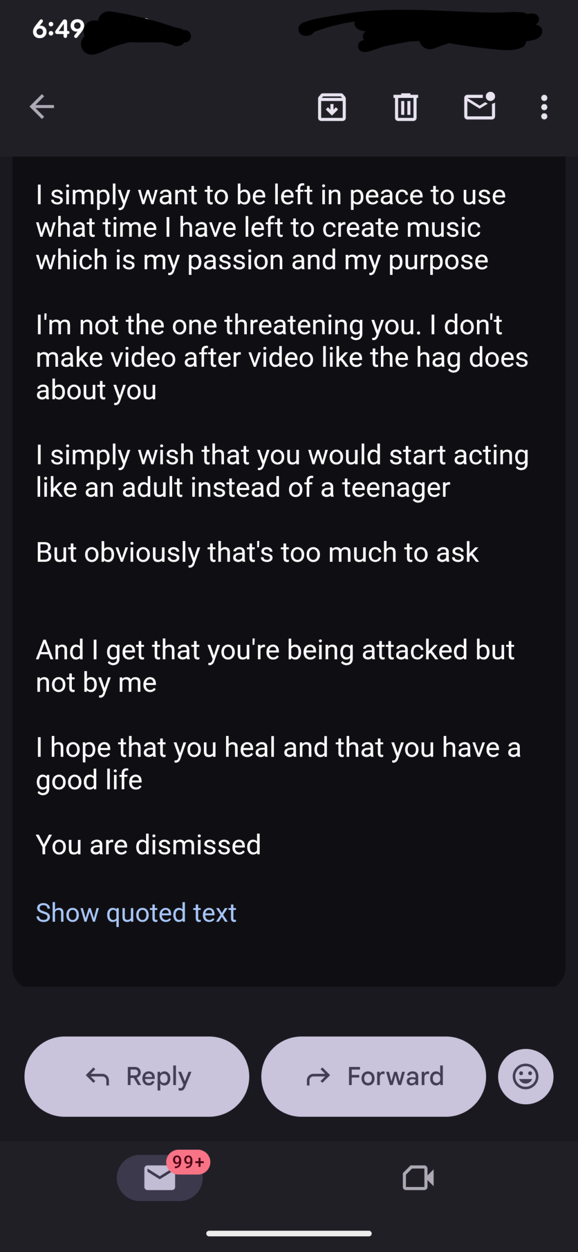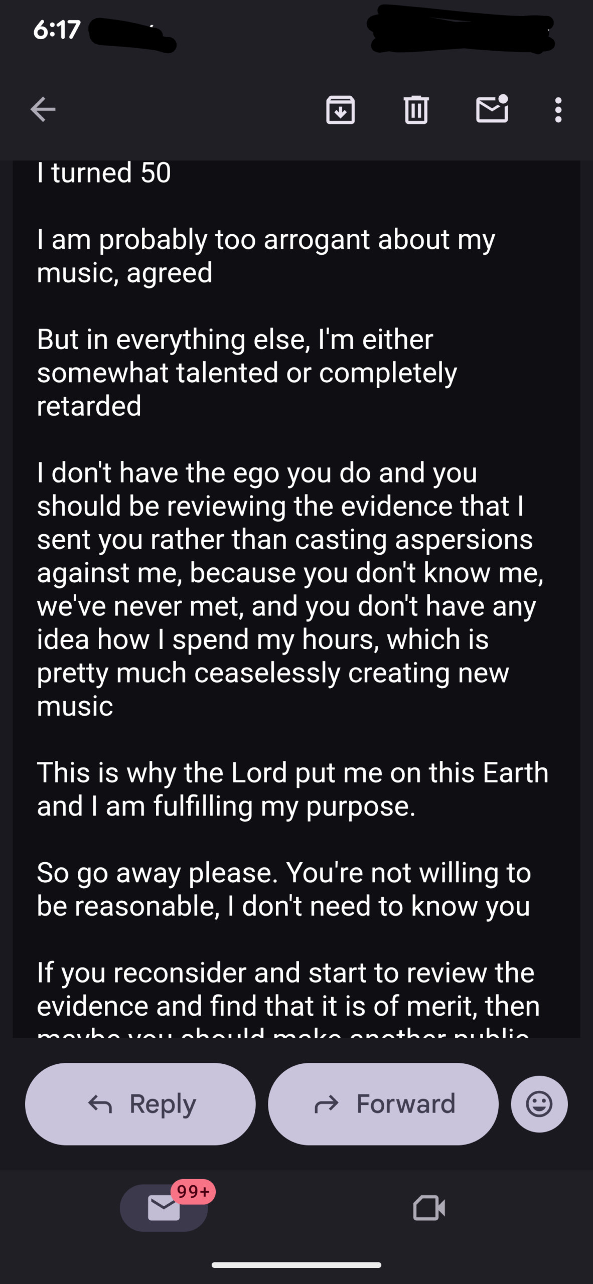 And he obviously didn’t like what I said because he replied…