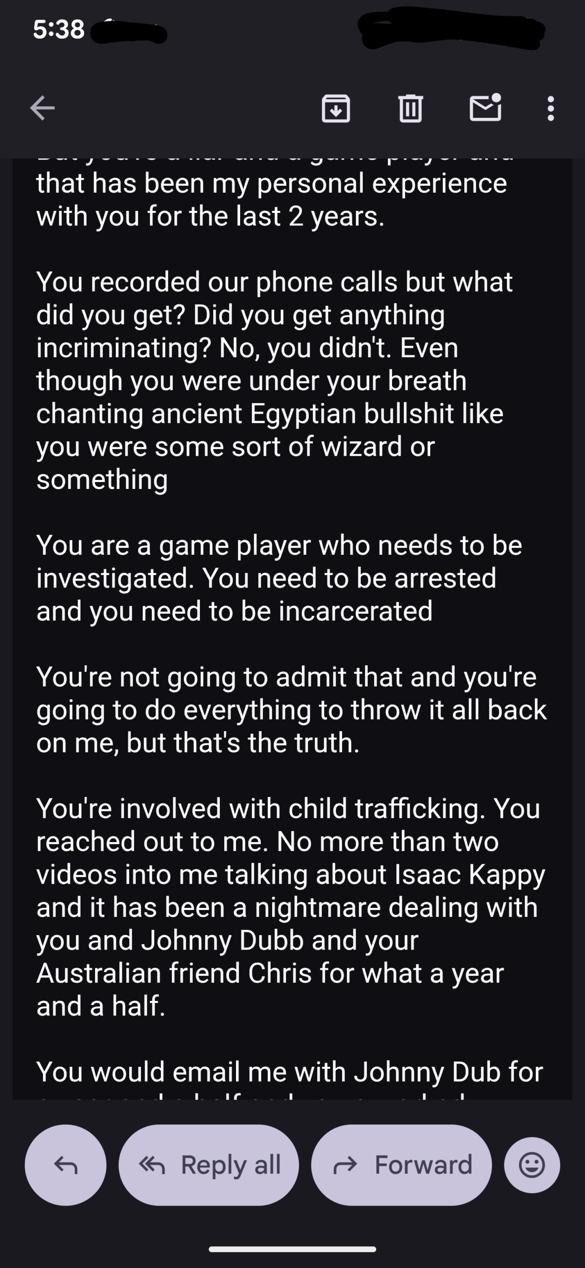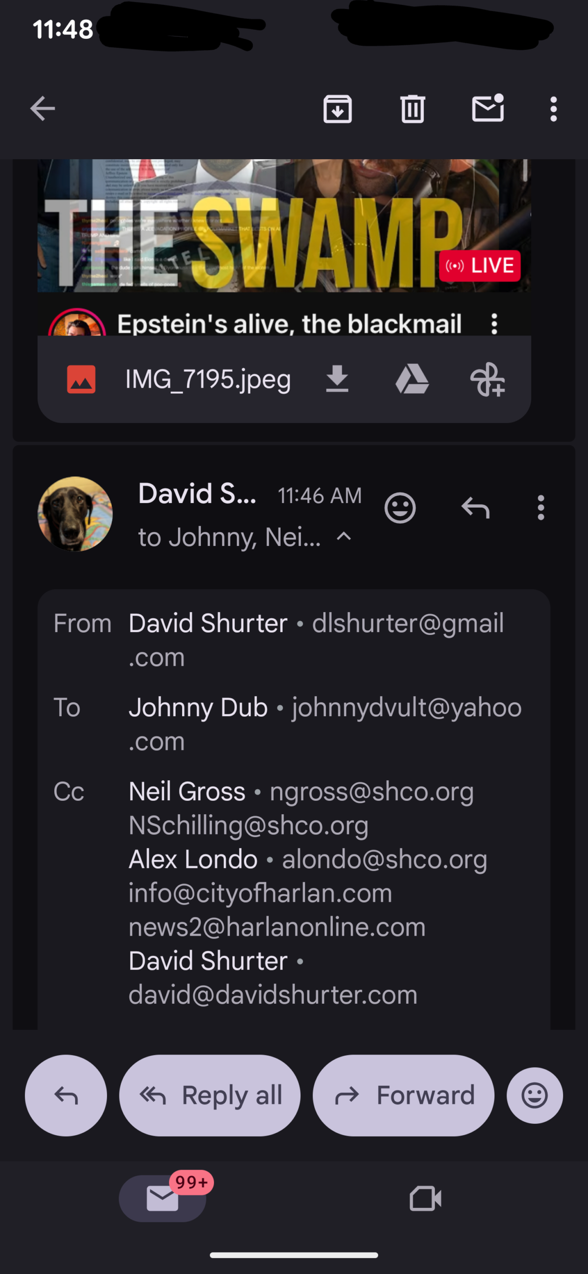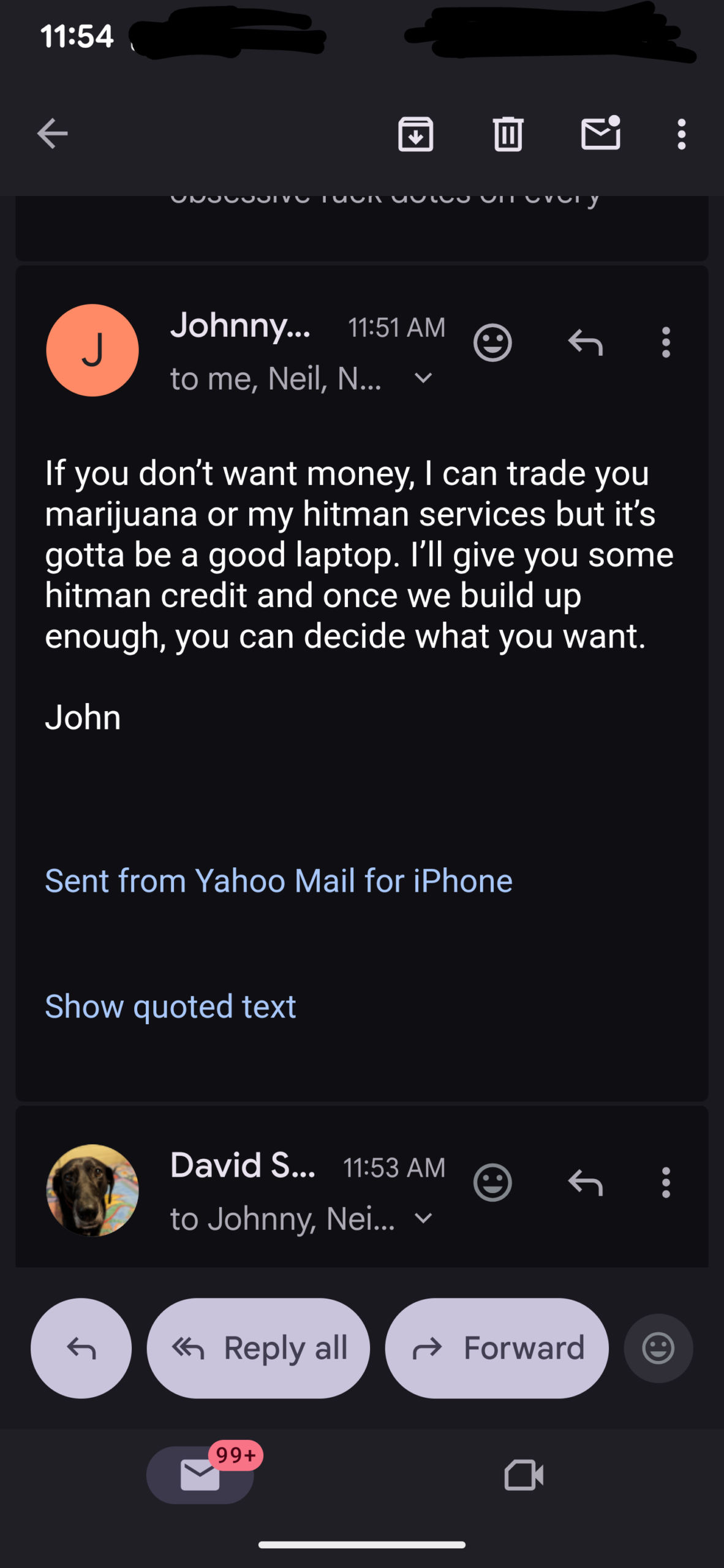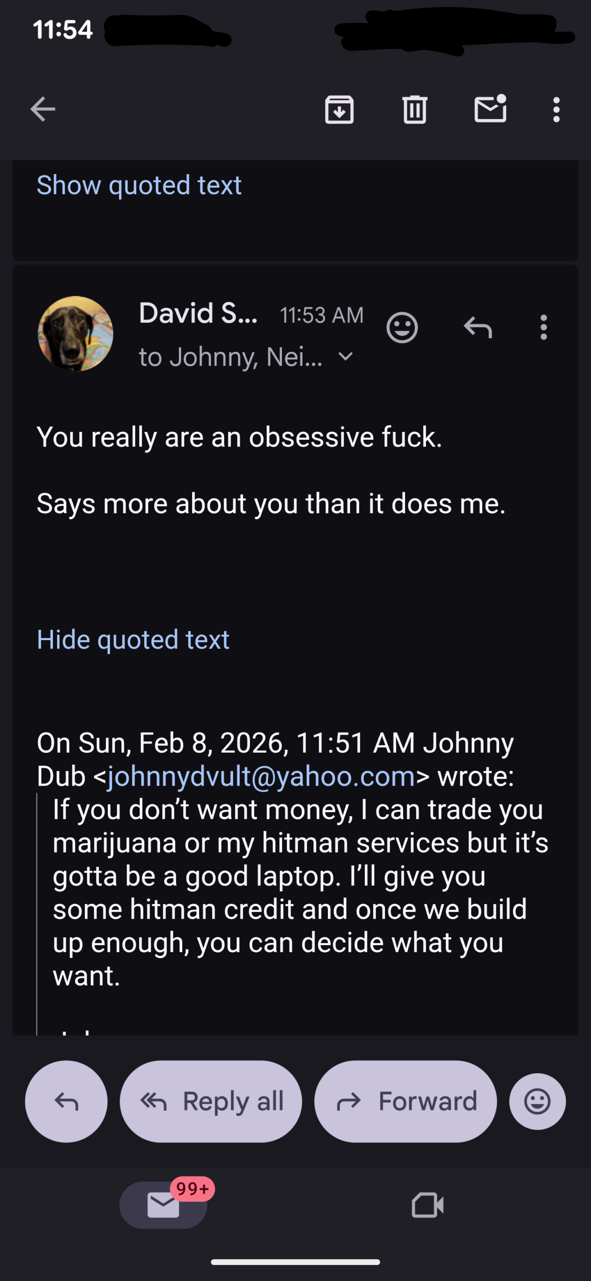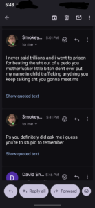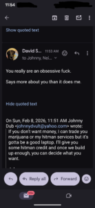 And this was Johnny Dub emailing me repeatedly after my YouTube live video today…
