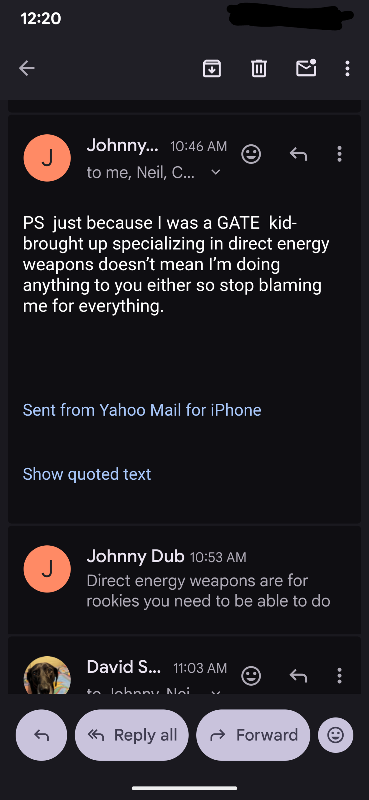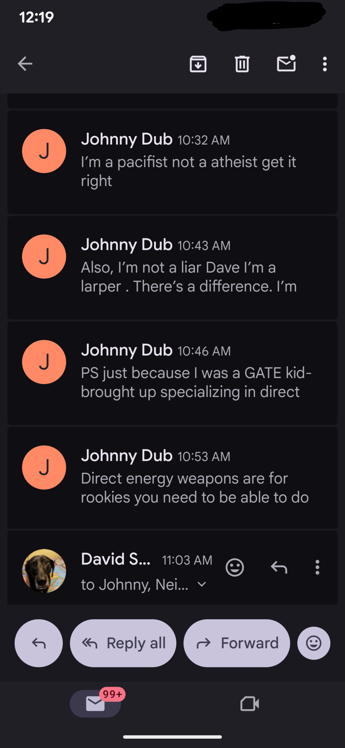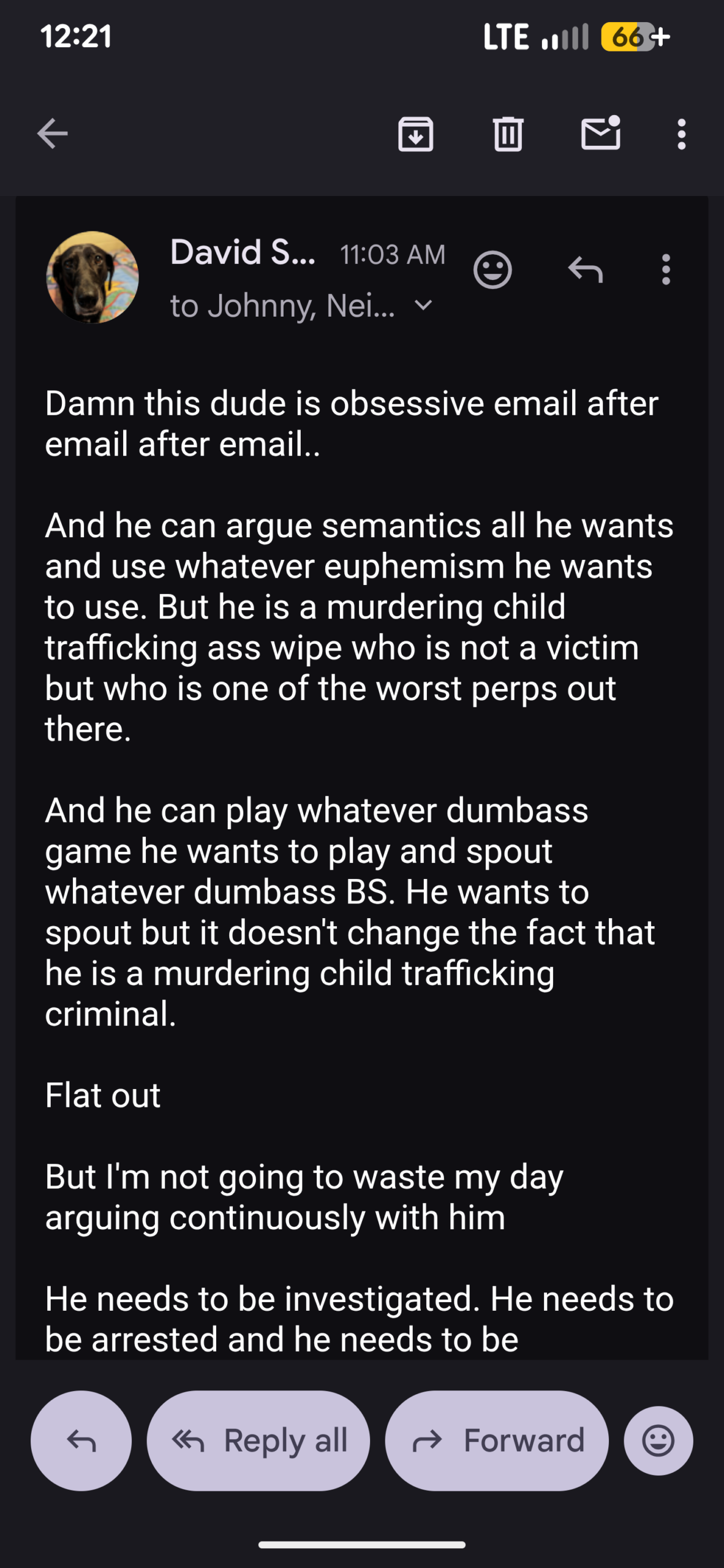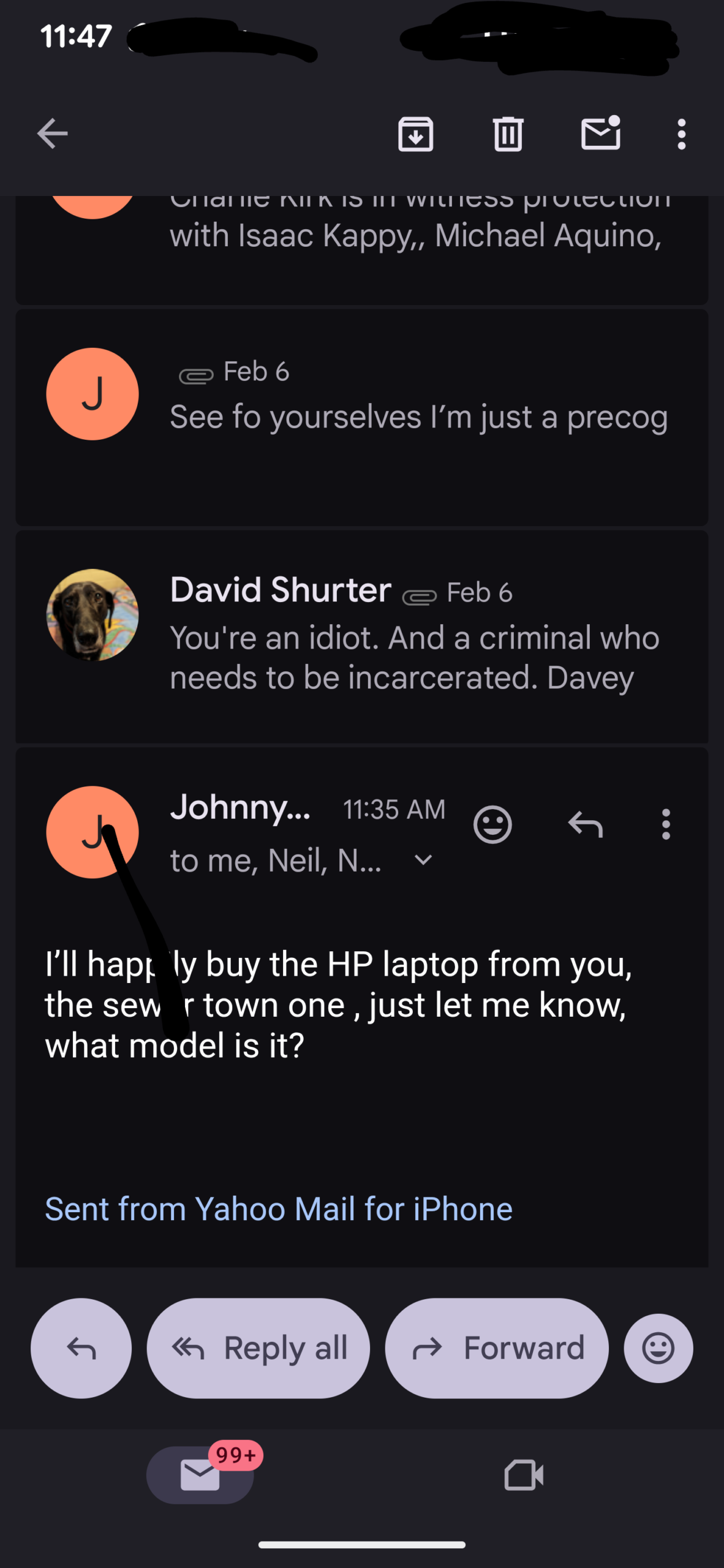 And this was Johnny Dub emailing me repeatedly after my YouTube live video today…