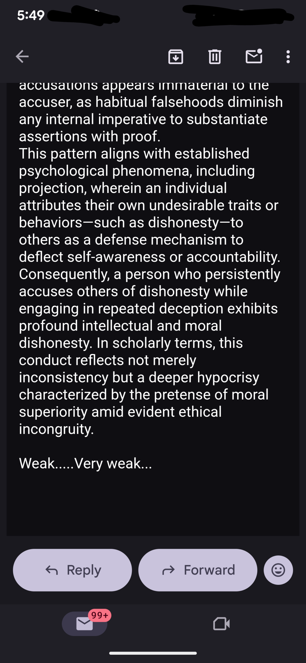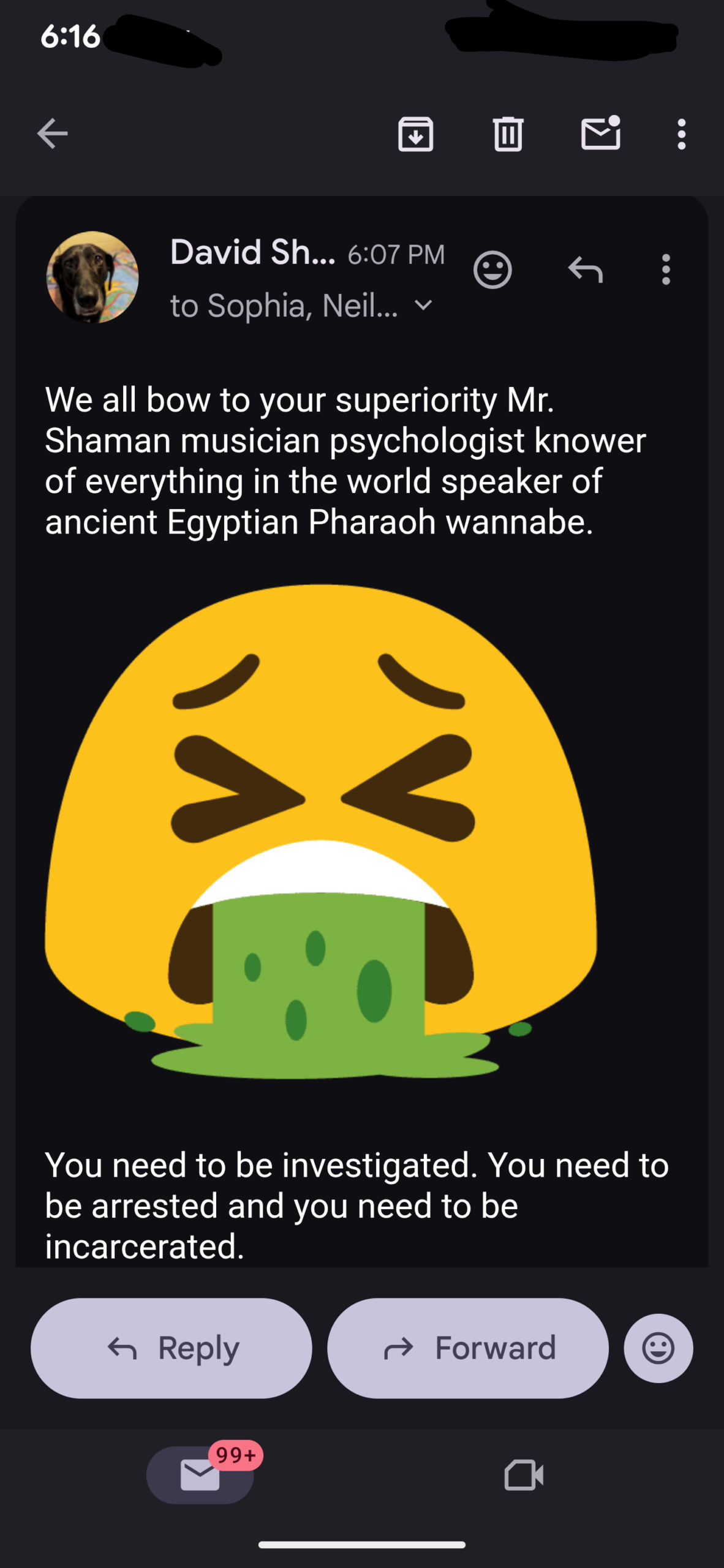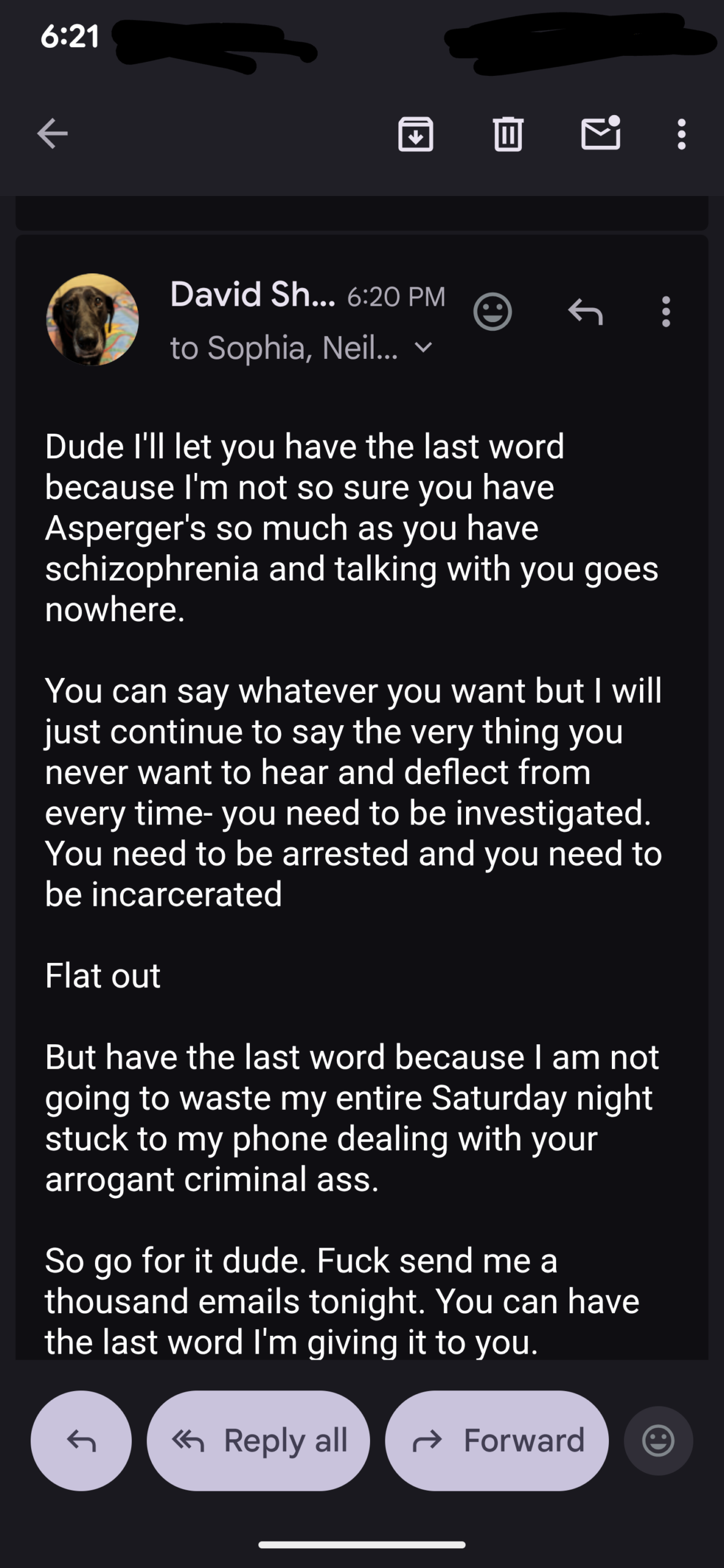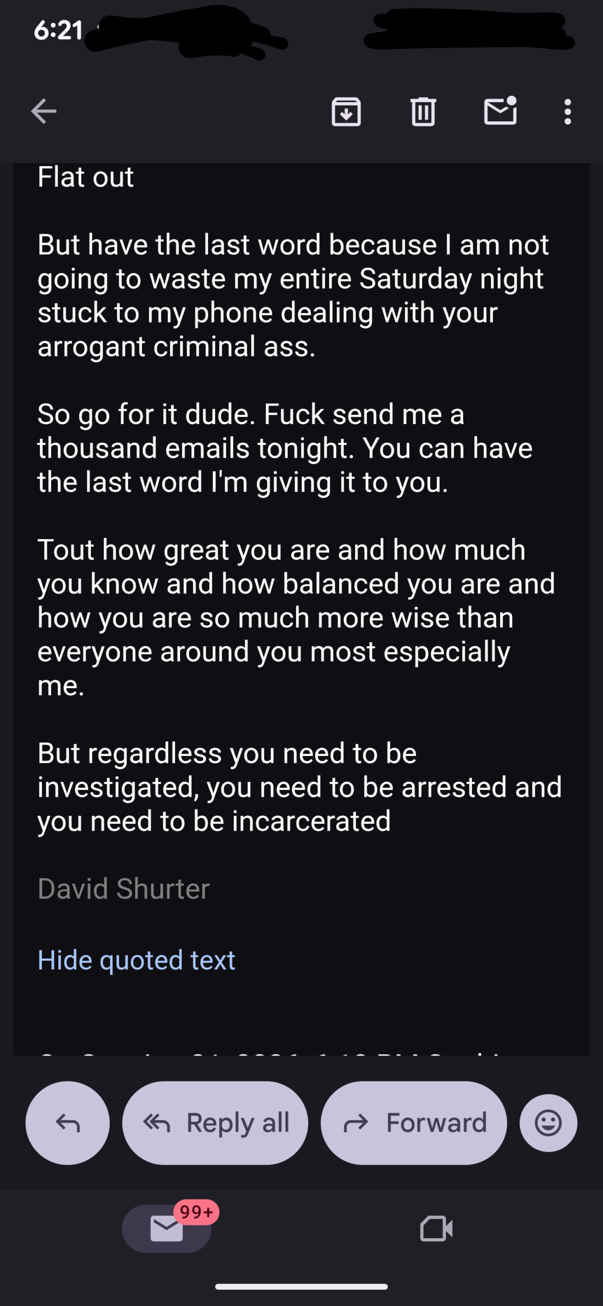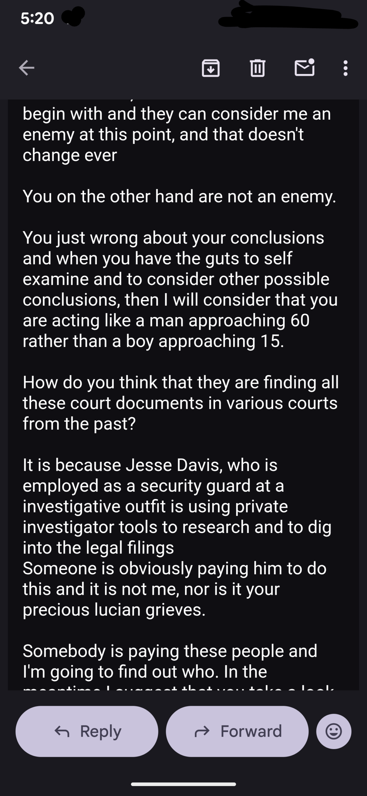 And so I replied while sending it to law officials…