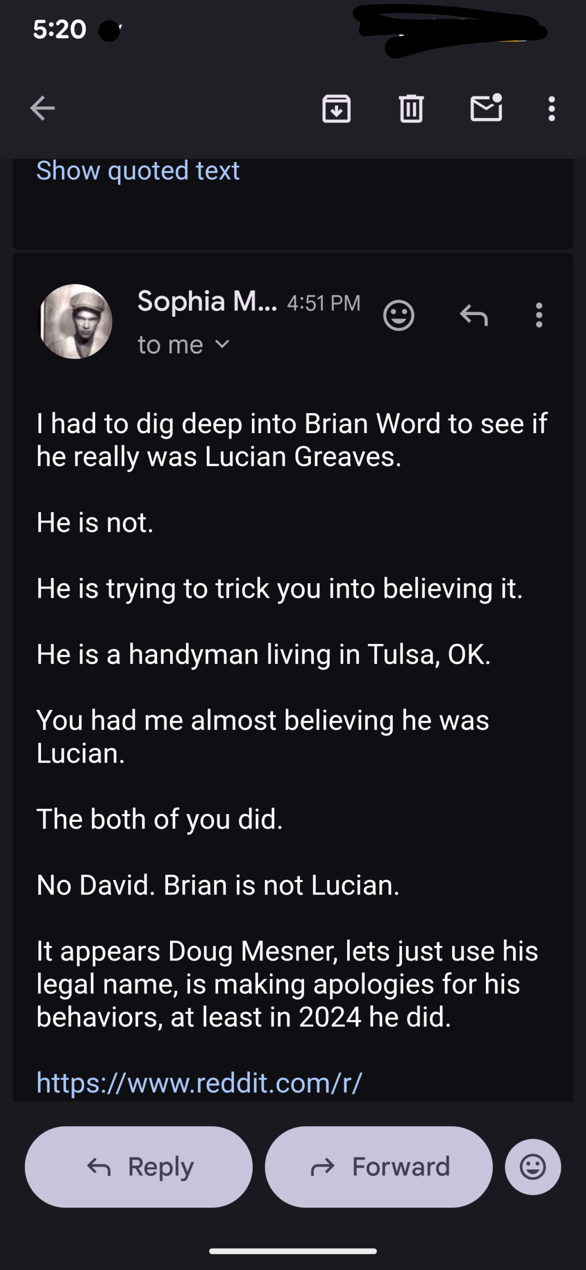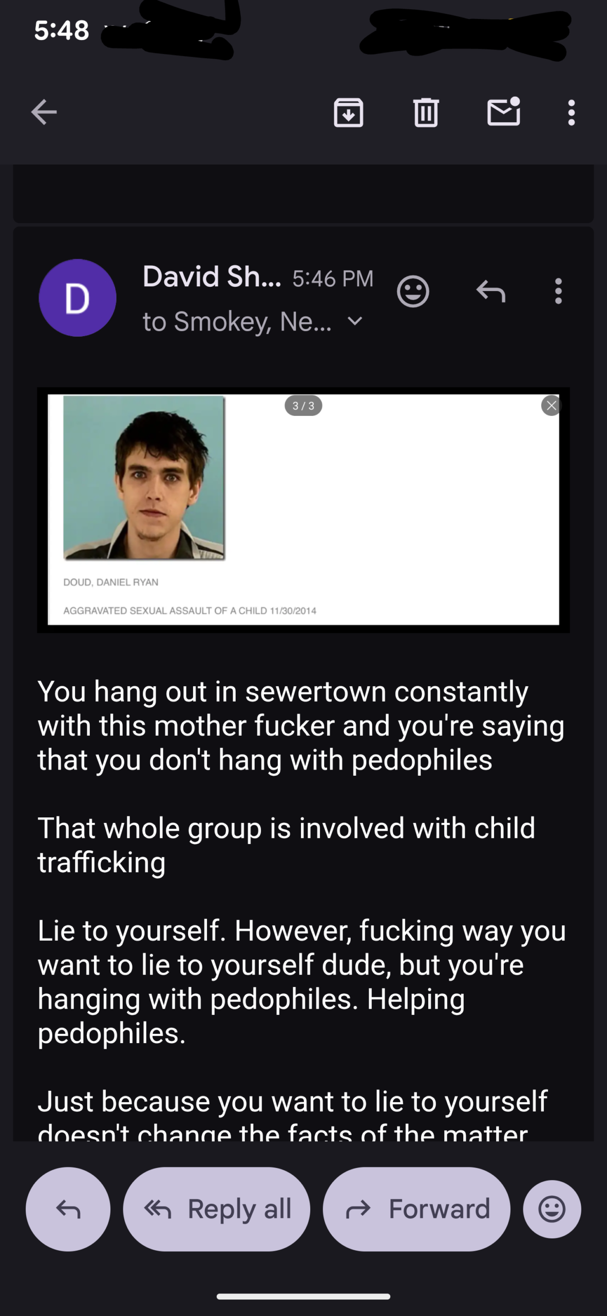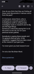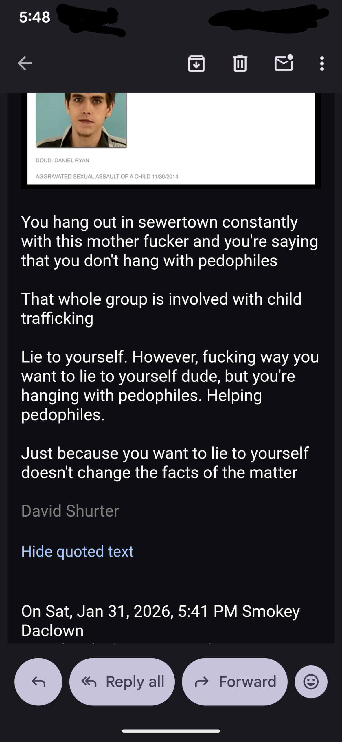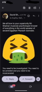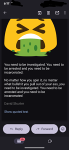 I think this child trafficking group is desperate to shut me up. I think Tere Joyce is projecting their BS onto me, as I’m OBVIOUSLY NOT plotting to have her murdered, Doug aka Lucien Greaves is bragging how he is “the Reaper”, and whether it be Daniel Doud or Geo Farnsworth behind that email account, suggesting they are going to come to my house, these are nothing BUT a threat.