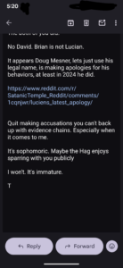 And while this was happening – THIS idiot started (obviously he is connected to Doug aka Lucien Greaves founder of the Satanic Temple)…