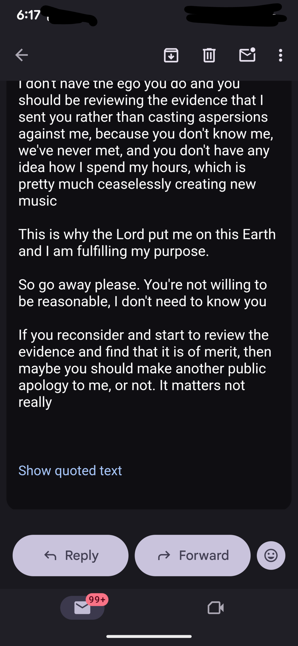At the end of this post I’m including the argument with Daniel Doud (or maybe it’s Geo) and I’m including the YouTube short I did when they tried to come into my house during my friend Owen’s funeral.