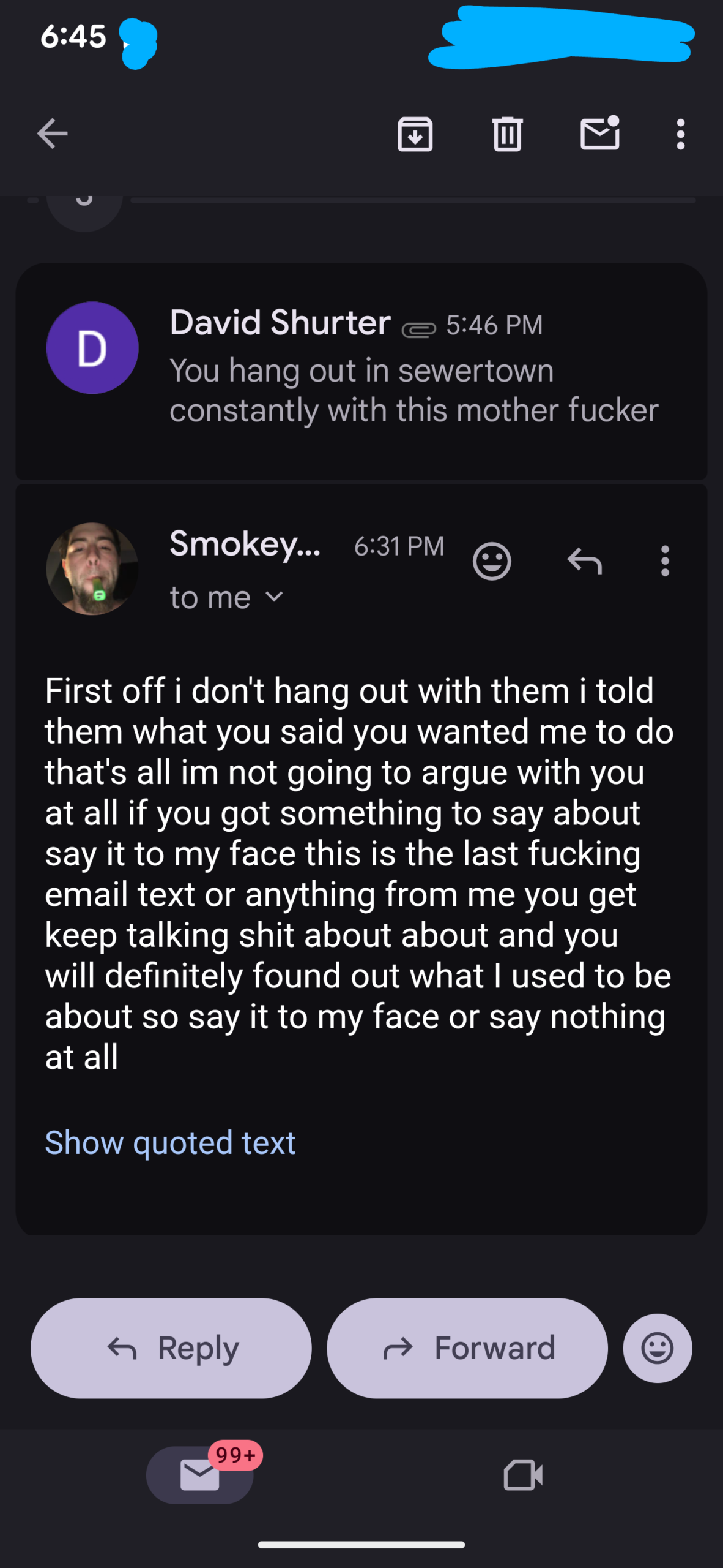 And Smokey da Clown emailed me saying I asked him to put a hit on Sewertown.