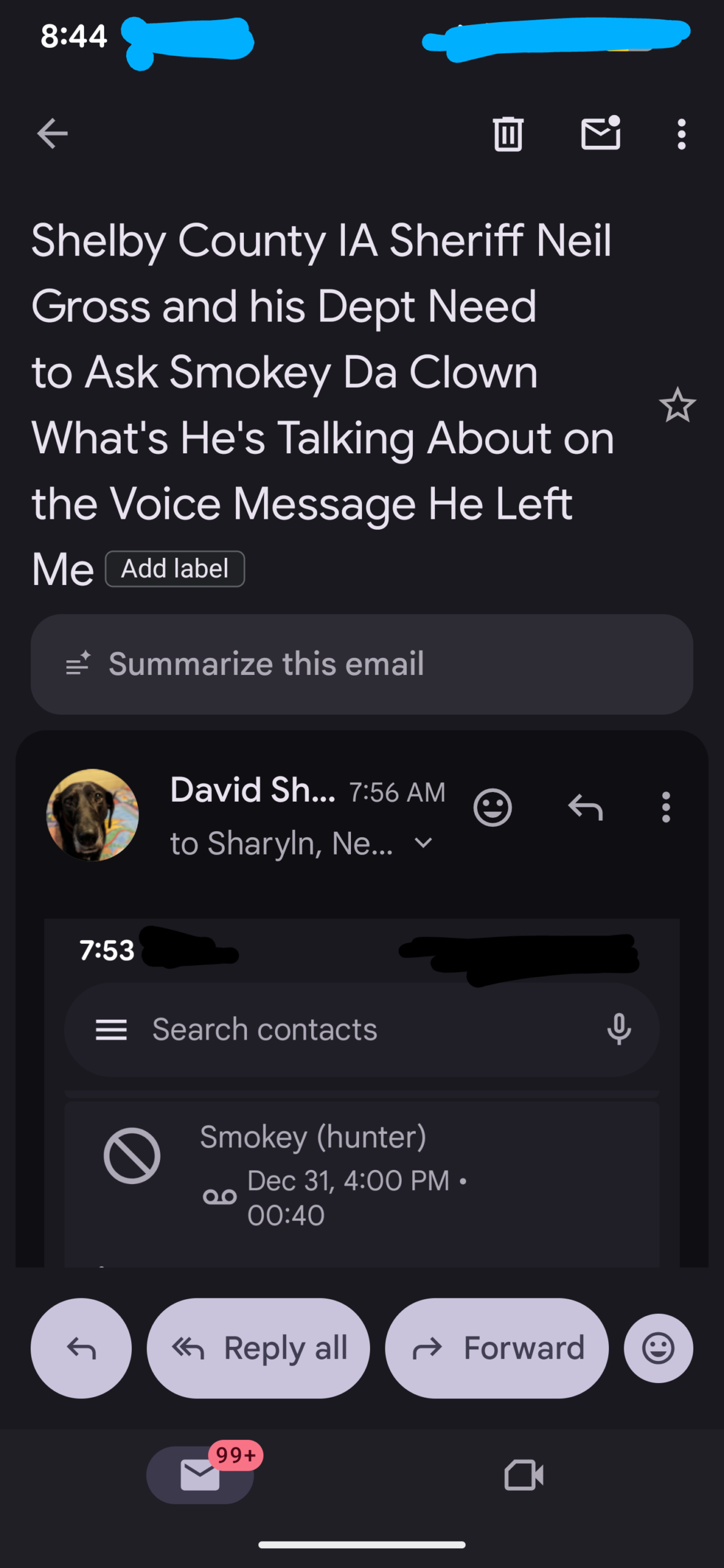 And this morning I was looking through my voicemails and discovered a voicemail from Smokey Da Clown…
