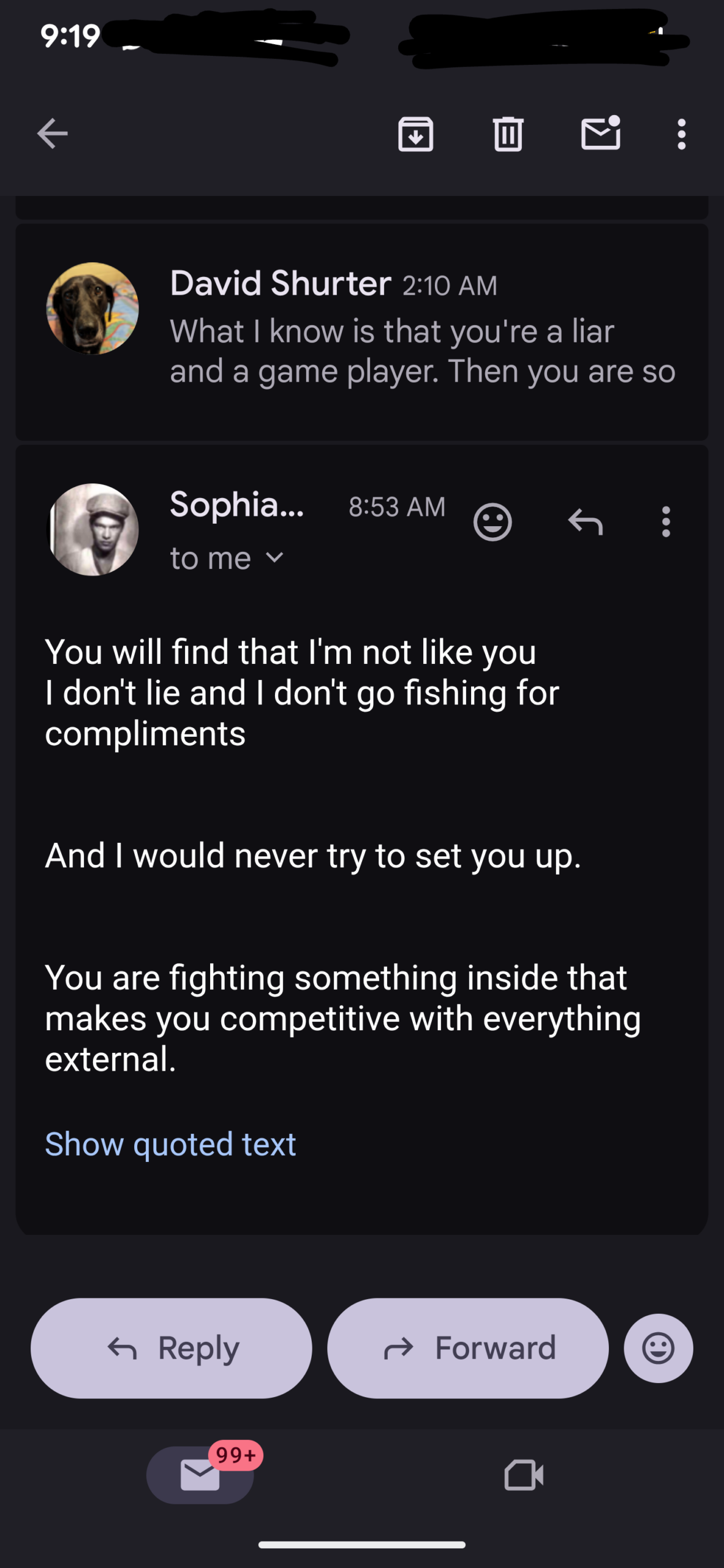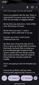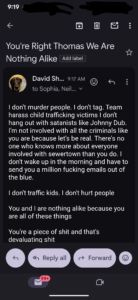 Of course he’s focused on me. I stated yesterday on my YouTube live that I had turned off getting notifications when people mention me so I no longer see Tere Joyce’s bs, so now he’s calling.