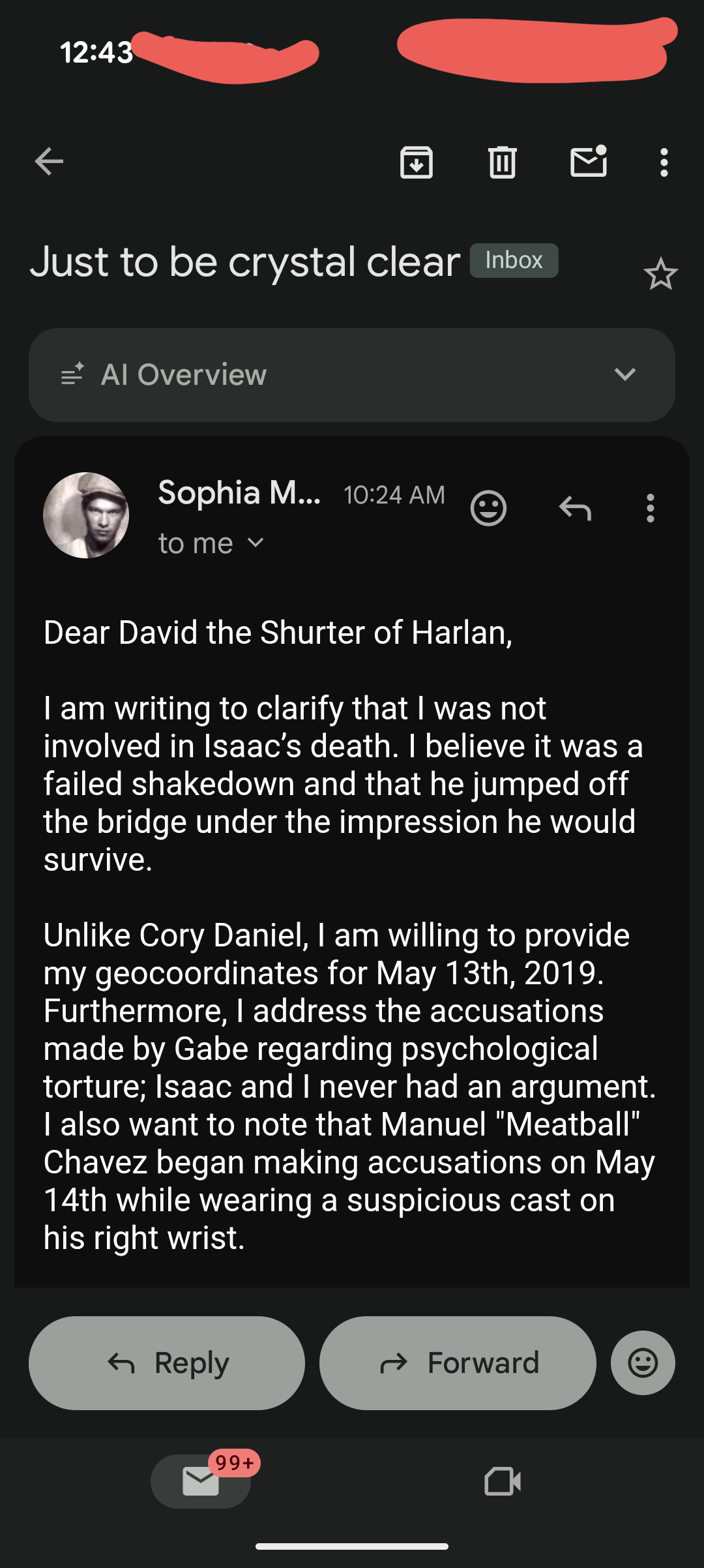 I didn’t respond to either of them, but I DID forward “Johnny Dub’s” B’s out, along with this…