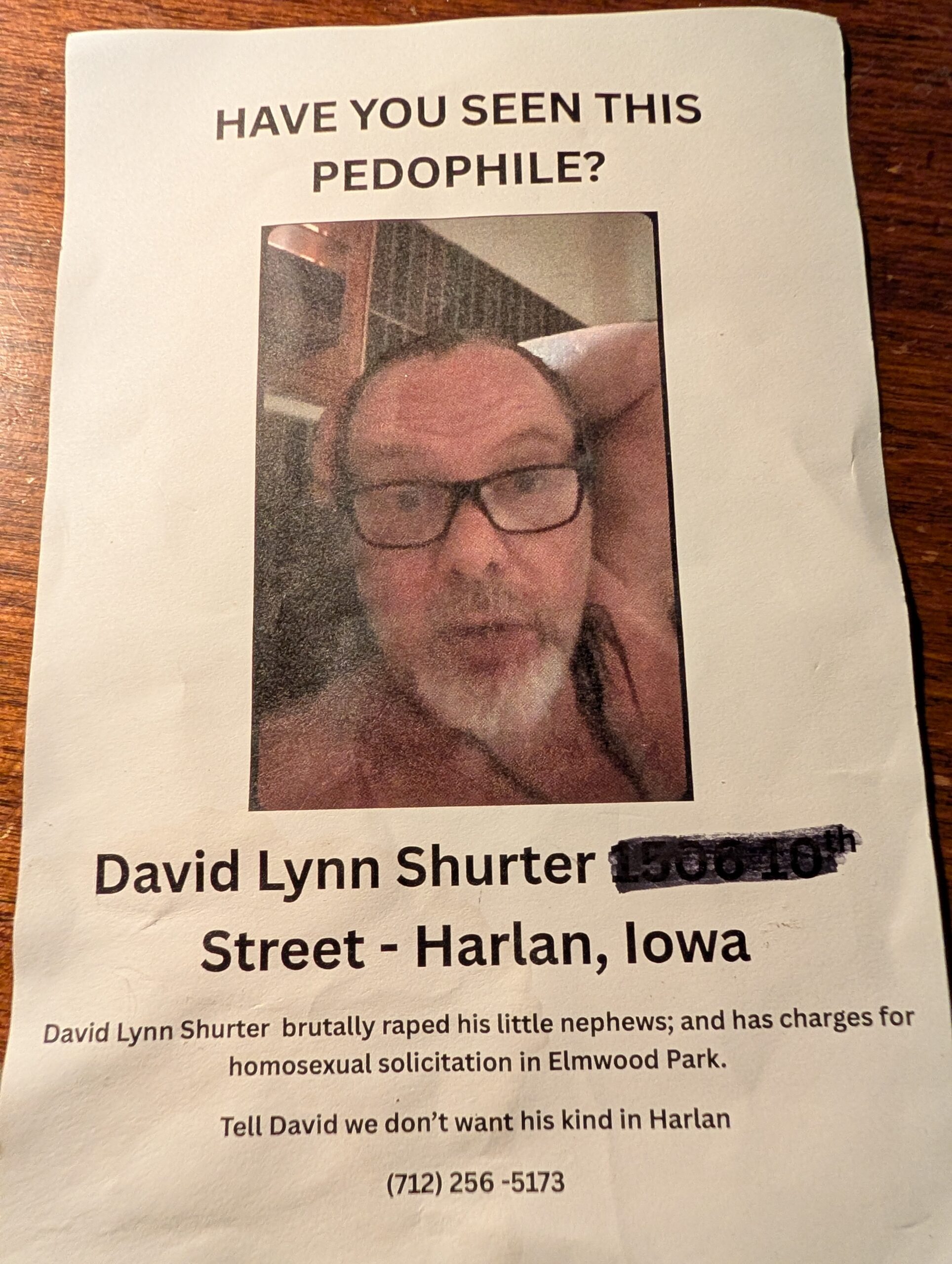 And don’t forget that a dude in Harlan named “Tee” with a friend of his caught the Shelby County IA Sheriff’s department deputies hanging THESE all over the town square…