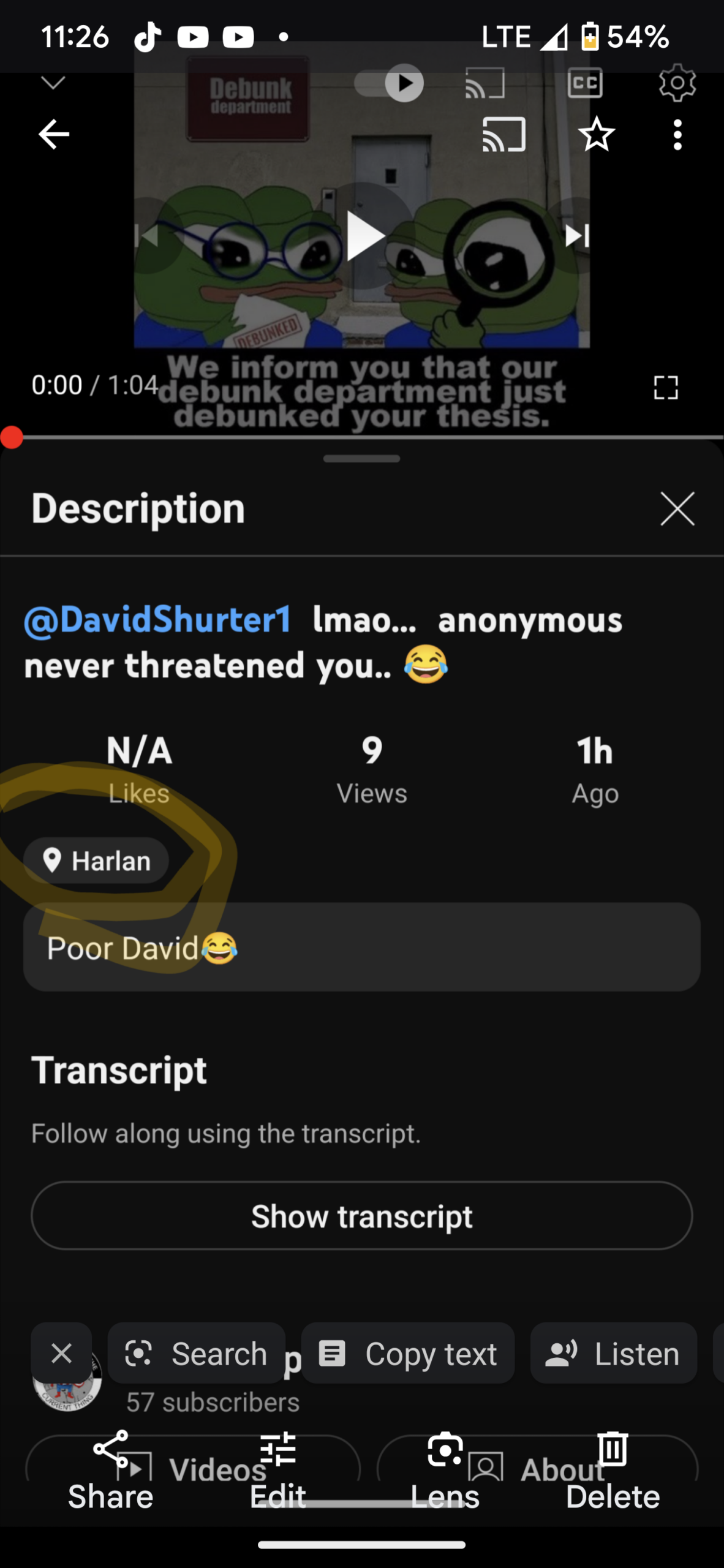 And the LIVE YOUTUBE VIDEOS OF HARLAN Doud sent me…