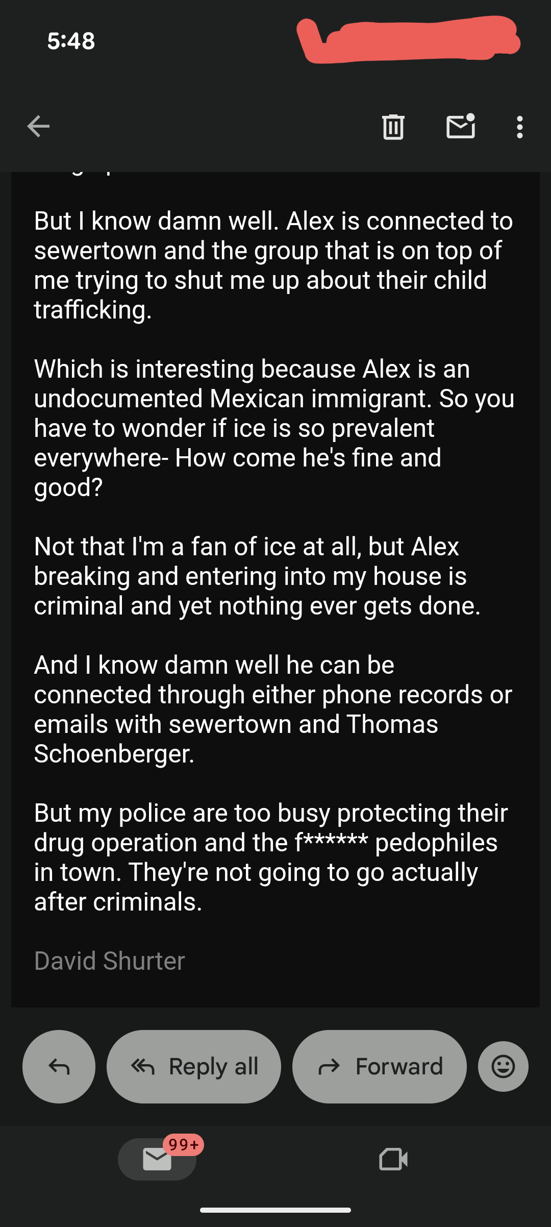 But they are BLASTING me with their directed energy weapons and virtually every time I leave my house they send, who I believe, is either George or Alex into my house (BOTH who have bragged about it).