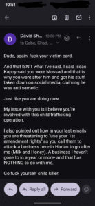 I’m calling him out as a child trafficker. And murderer. And the fact he’s a little bitch.