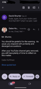 IMMEDIATELY after I sent my reply- Hoffman sent me this…