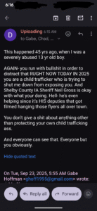 And just to remind everyone – these are the flyers Shelby County IA Sheriff Neil Gross and his Dept distributed all over town…
