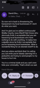 And Daniel Doud has repeatedly bragged they are working in league with this meth head, which Shelby County IA Sheriff Neil Gross has seen the proof of.