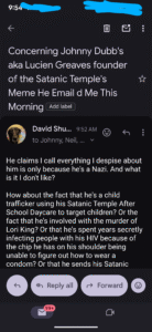 Then Johnny Dubb aka Lucien Greaves founder of the Satanic Temple sent me a meme…