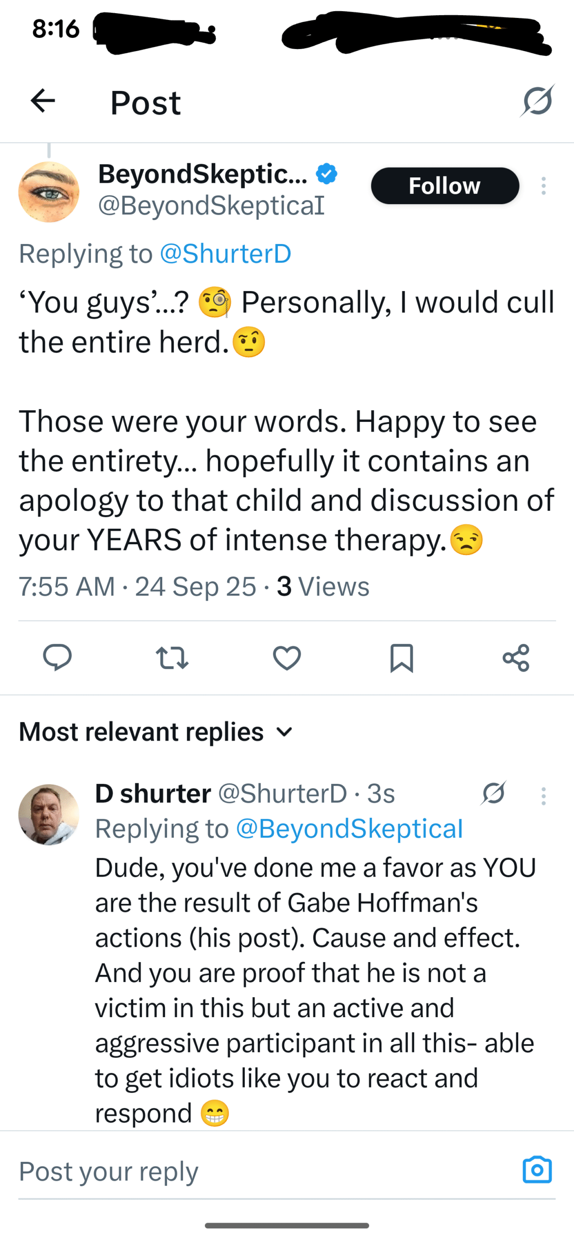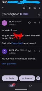 Later on, after the neighbor they were speaking about tried to provoke me over and over yesterday, I come home and he is walking past my house with a chemical sprayer. So I sent out this …