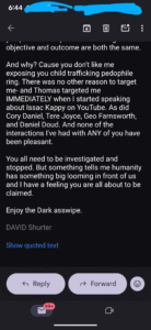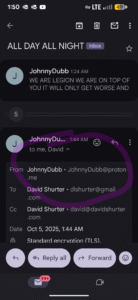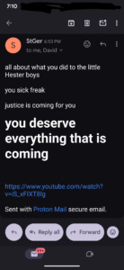 And this a screenshot of the video link he sent- once again with my house burning down…