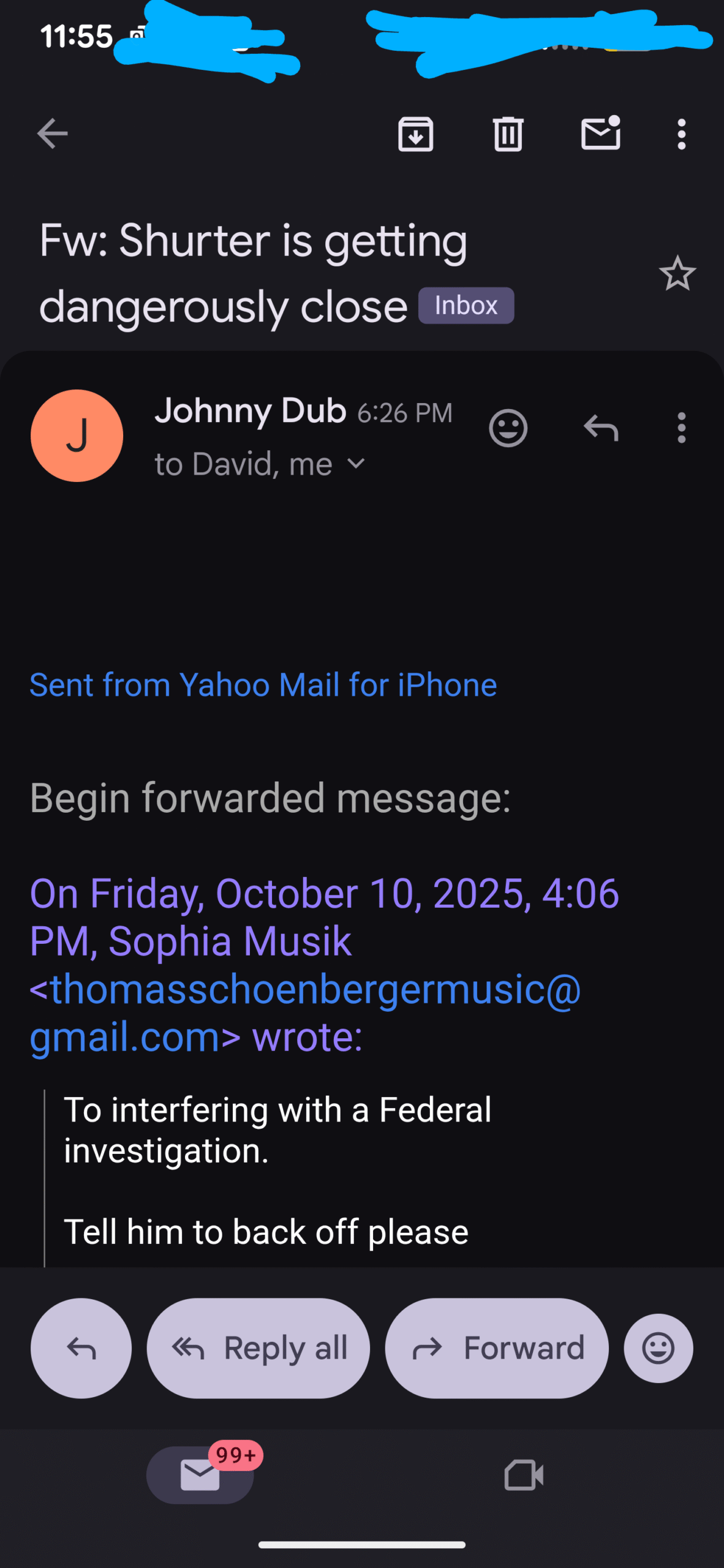 Obviously they’re associates since his next email was Dubb forwarding an email that Thomas Schoenberger sent HIM…