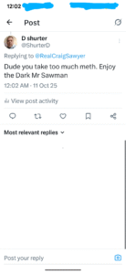 AND Craig Sawyer aka the Sawman, directly mentioned me on X…