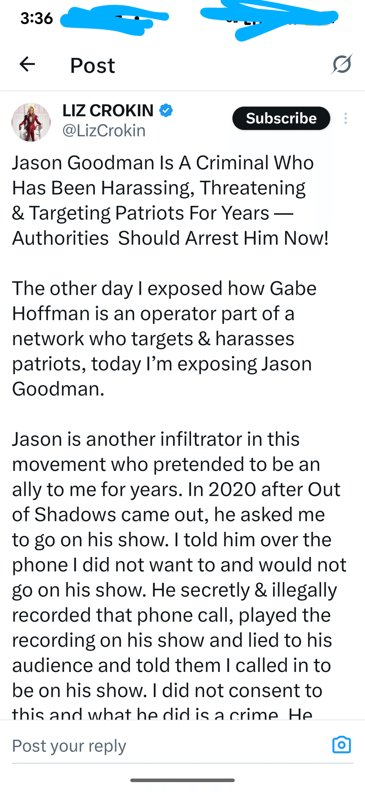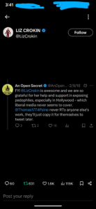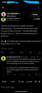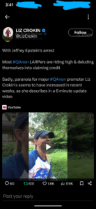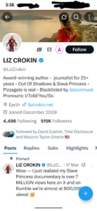 But as far as the Liz Croken thing- first- she seems to be in league and associate herself with the entire group that is BLATANTLY and OUT IN THE OPEN covering up and hiding the truth in this Jeffery Epstein Mess…