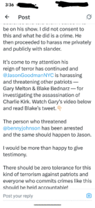 And the “Johnny Dubb” who again, if he ISN’T Lucien Greaves founder of the Satanic Temple he is STILL CLOSE ASSOCIATES of him AND Thomas Schoenberger- esp. considering “Johnny Dubb, Thomas Schoenberger, and their Australian associate Chris McGimpsey-Jones tagged team harrassed the ever living hell out of me every day all day for a YEAR!