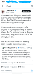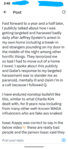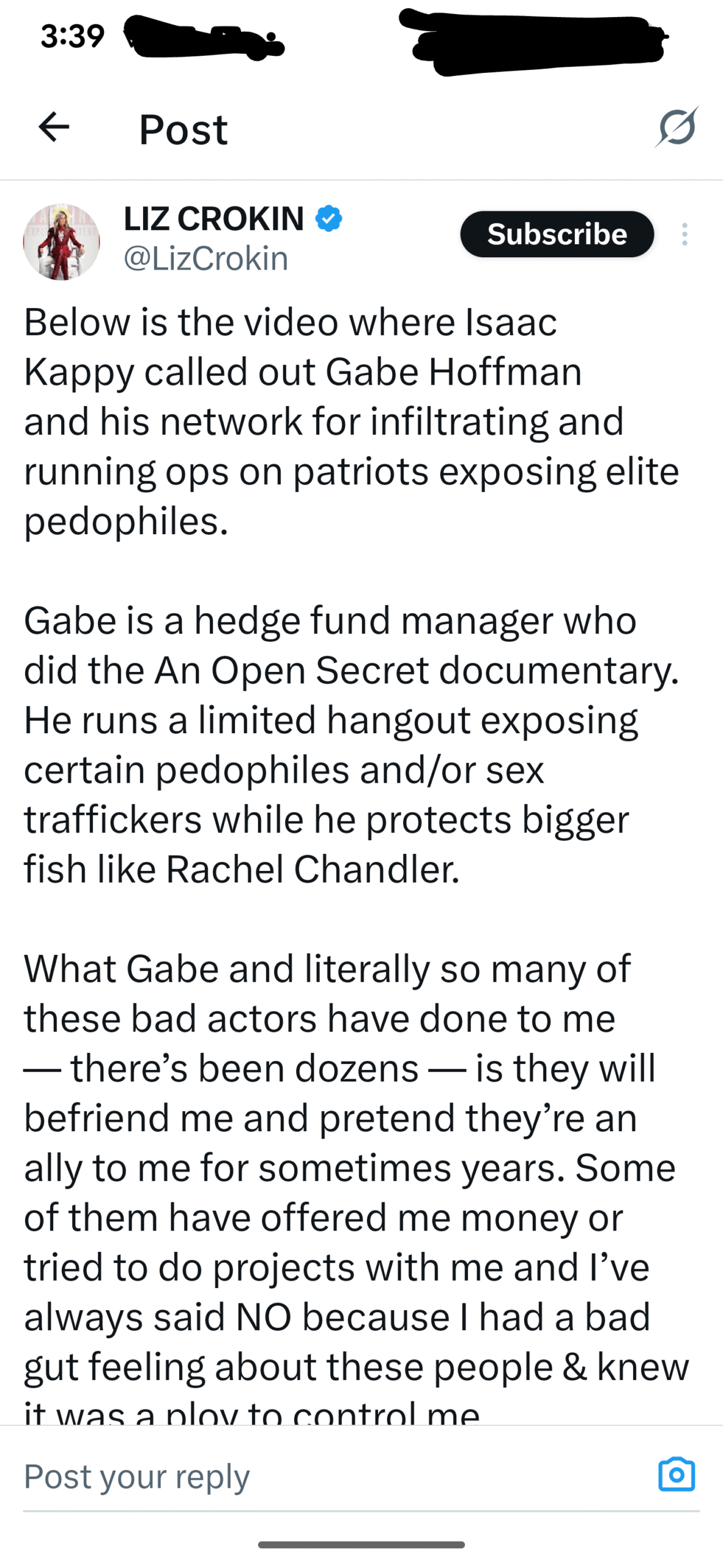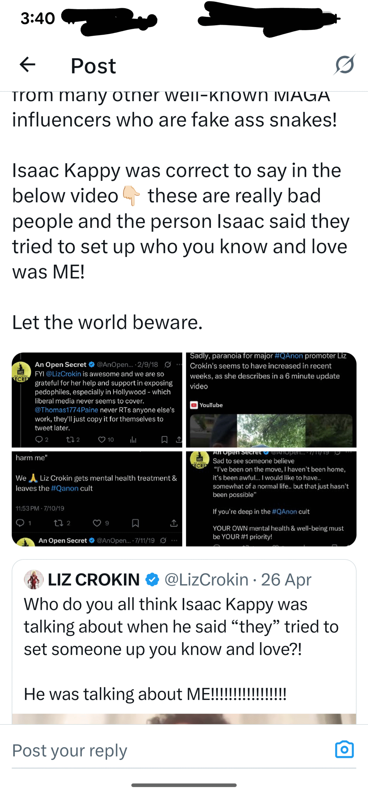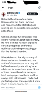 Honestly I have no idea who this Liz person is, but supposedly she’s a “victim” of this child trafficking BS who was friends with Issac Kappy.