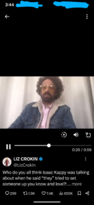 So this Liz has a HUGE following and was friends with Issac- in such a way that she is claiming things he spoke about were solely focused on her- and yet she is still alive, fine, AND talking.