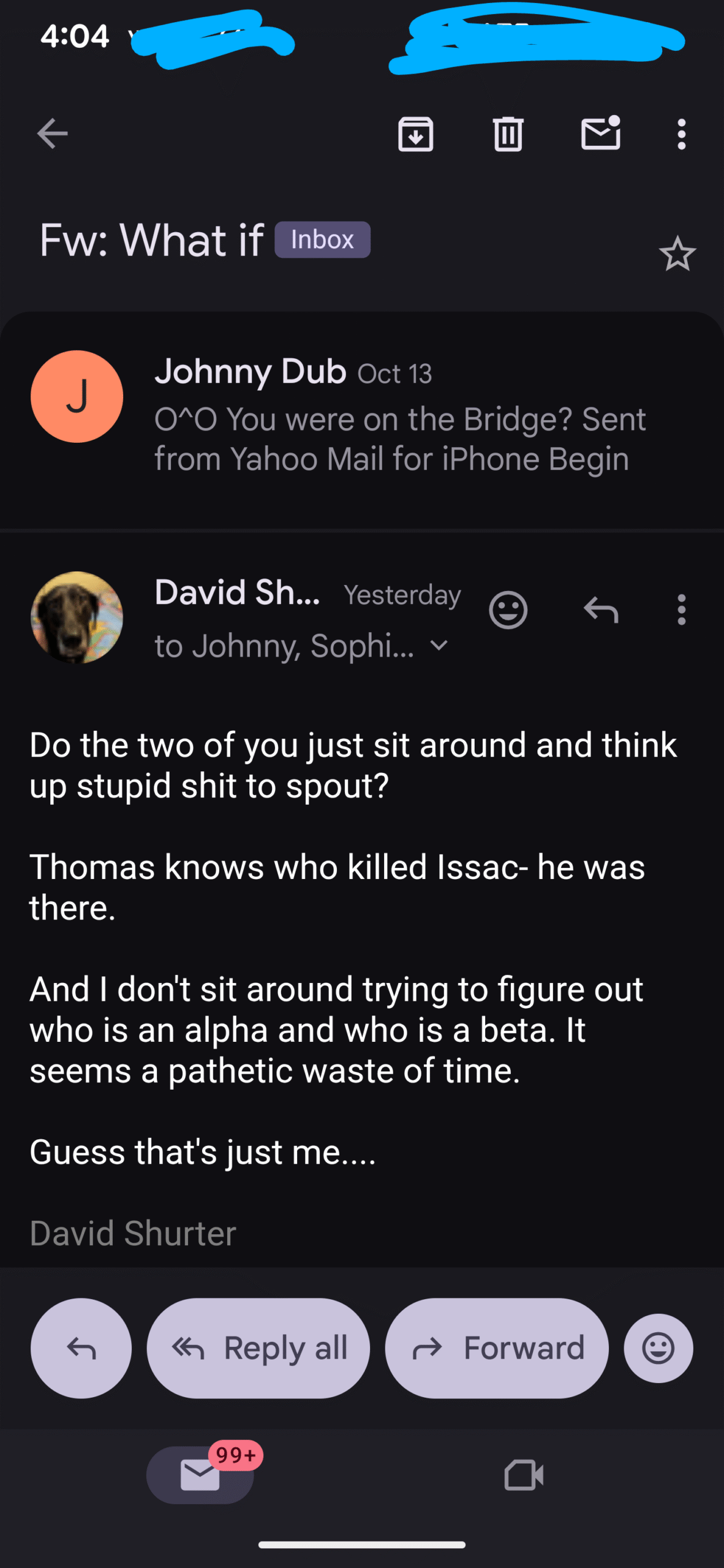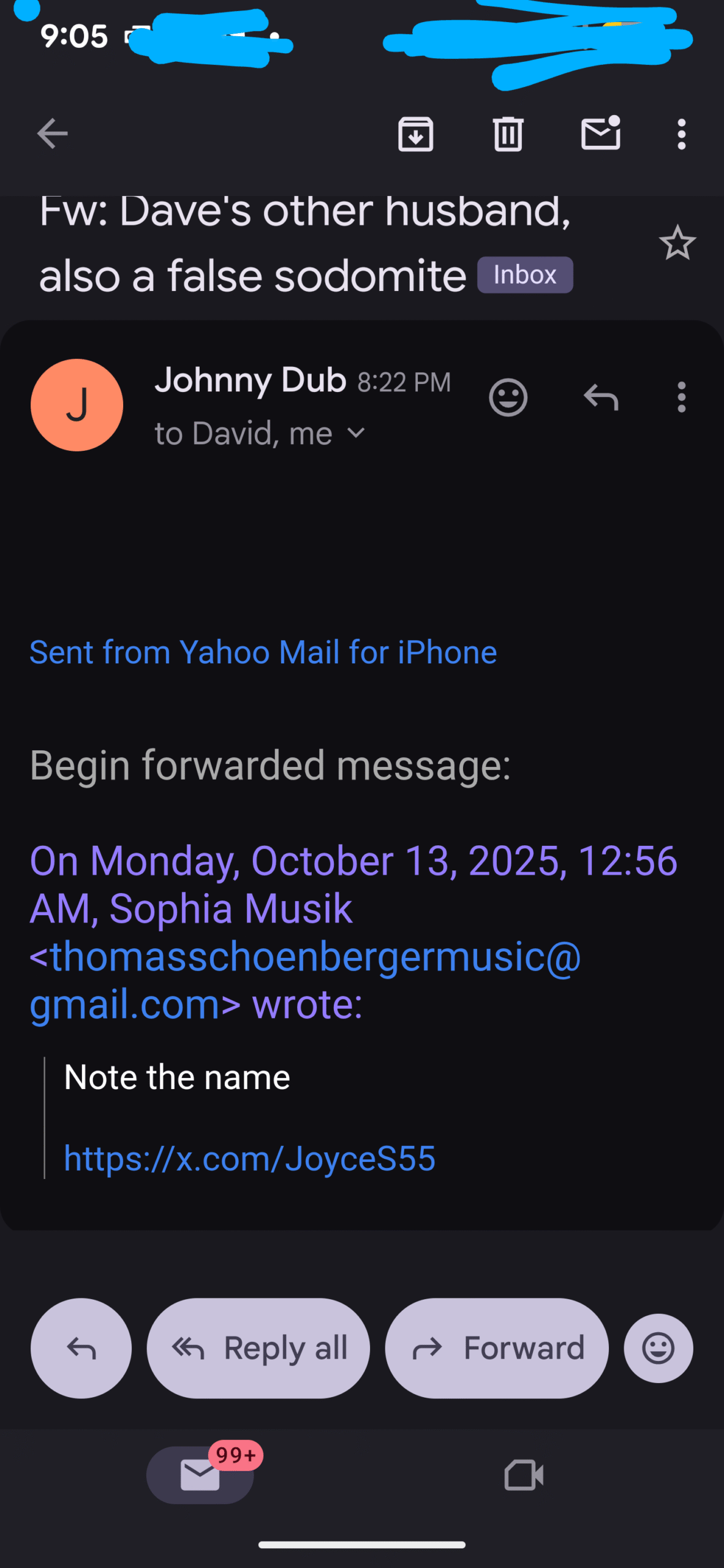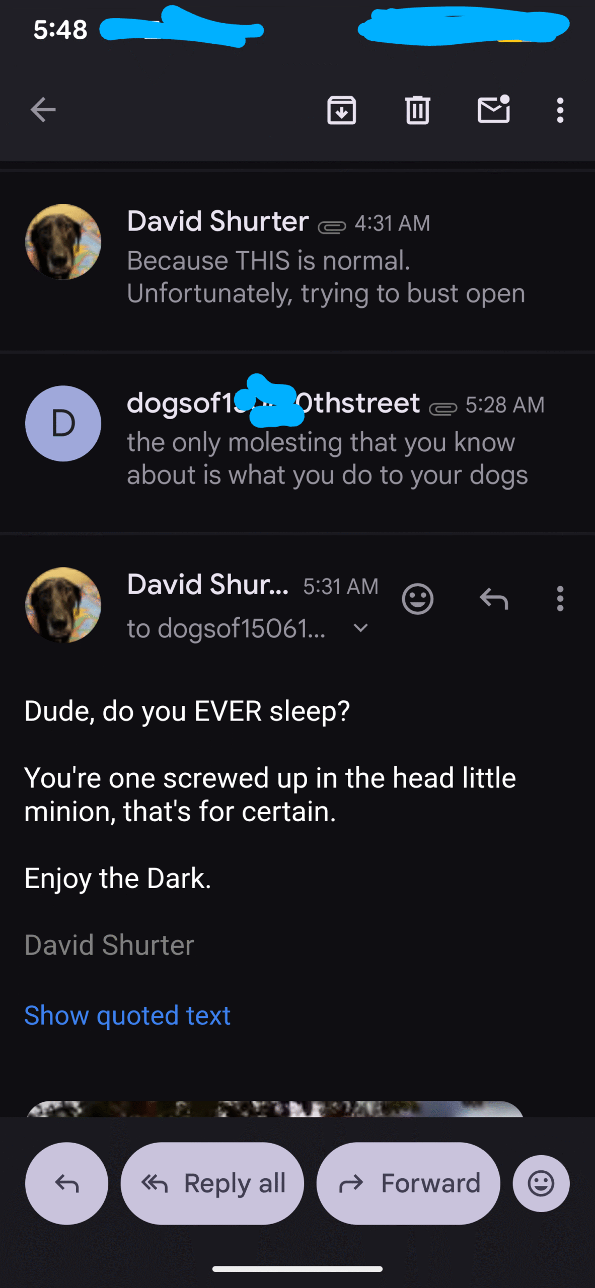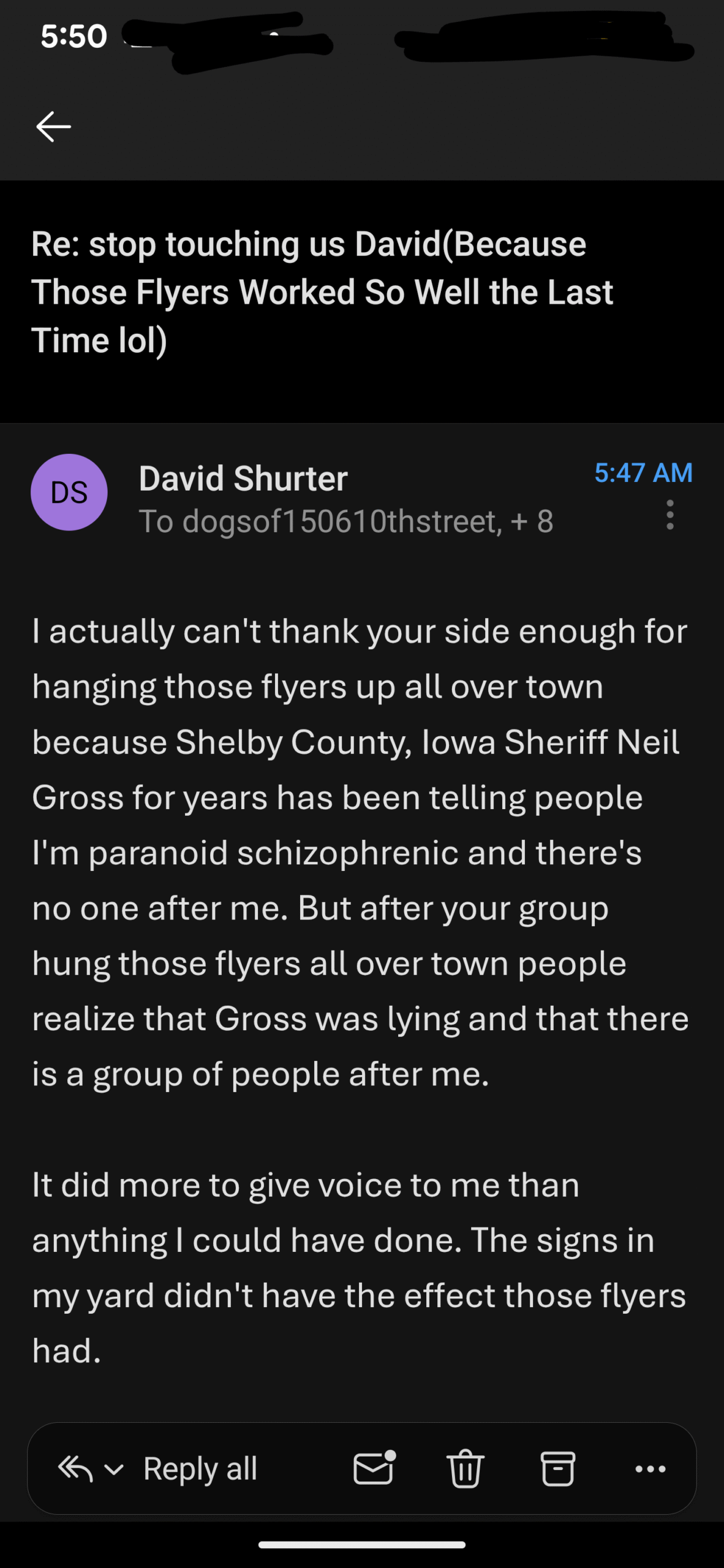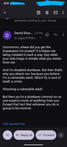Regardless who he is, this “Johnny Dubb” character harasses me with constant emails because he’s involved with Thomas Schoenberger and this whole child trafficking mess. It’s the entire reason for his whole obsession with me.