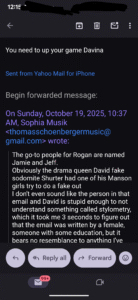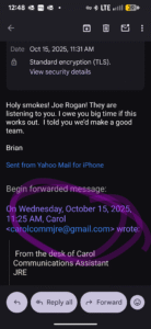 And who forwarded me the email from “Carol”, Joe Rogan’s supposed producer…