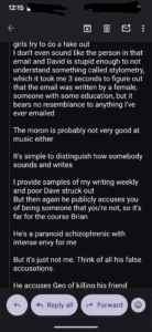 For someone who didn’t watch my live he certainly had a lot to say about it. In fact the phrase “he doeth protest too much” definitely comes to mind.