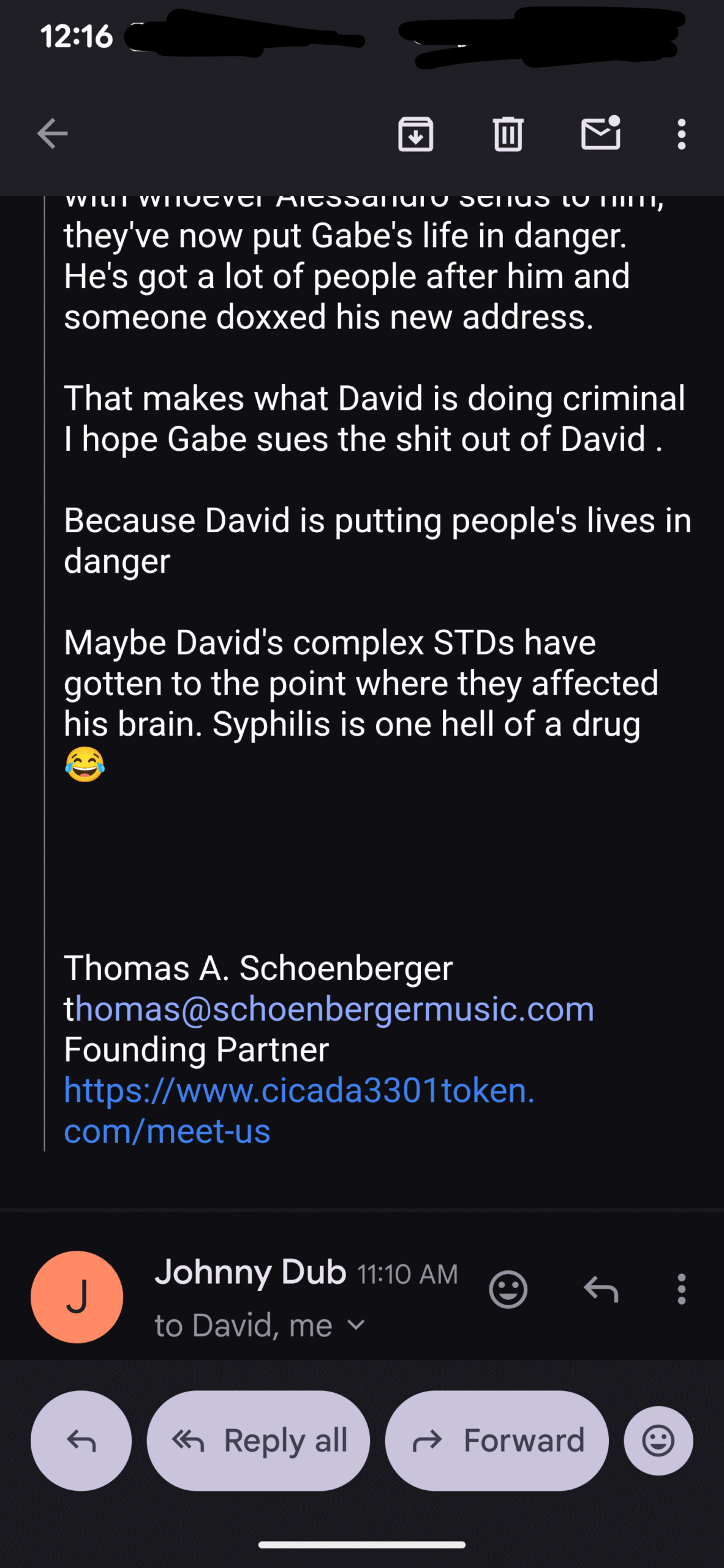 With that pointed out- here is Thomas Schoenberger’s emails- forwarded by “Johnny Dubb”…