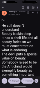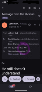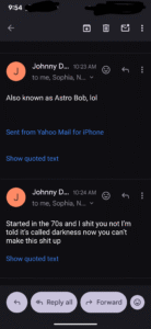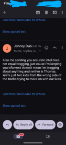 And the fact that he lies about his name in these emails “my name isnt Johnny it’s Brian” but then believes if you don’t take every word he says as gospel you’re an idiot is the epitomy of Doug’s behavior.