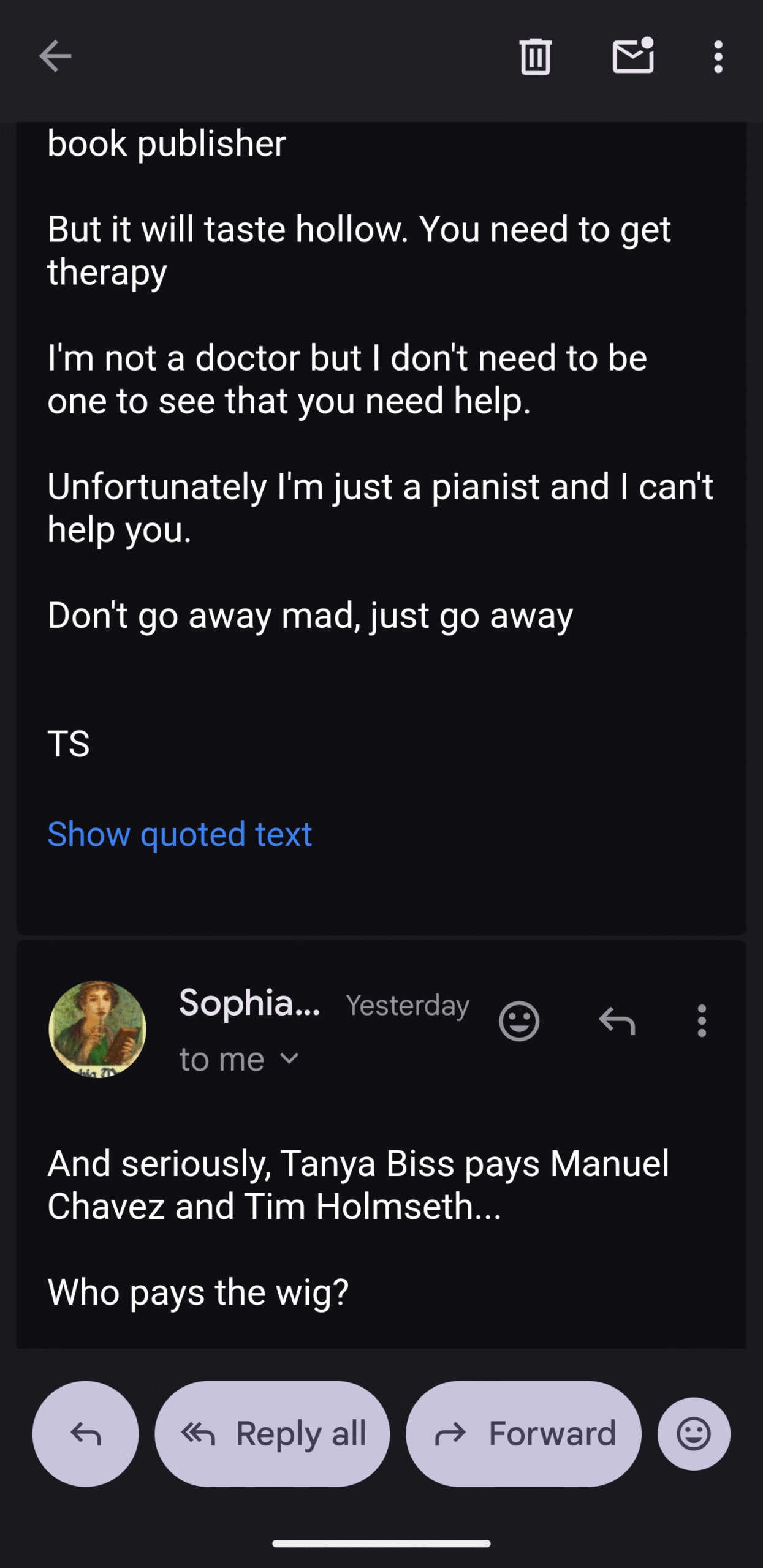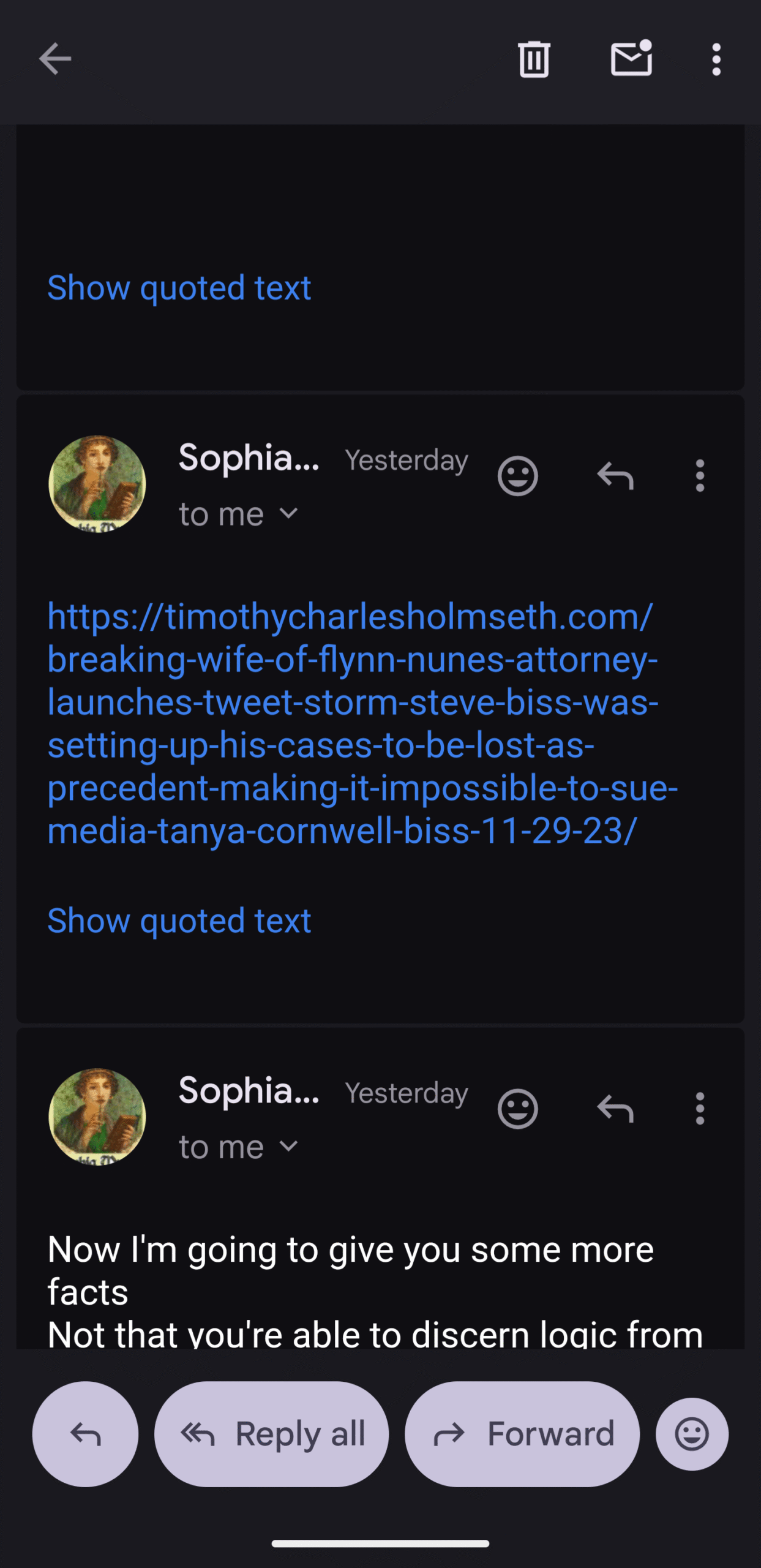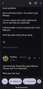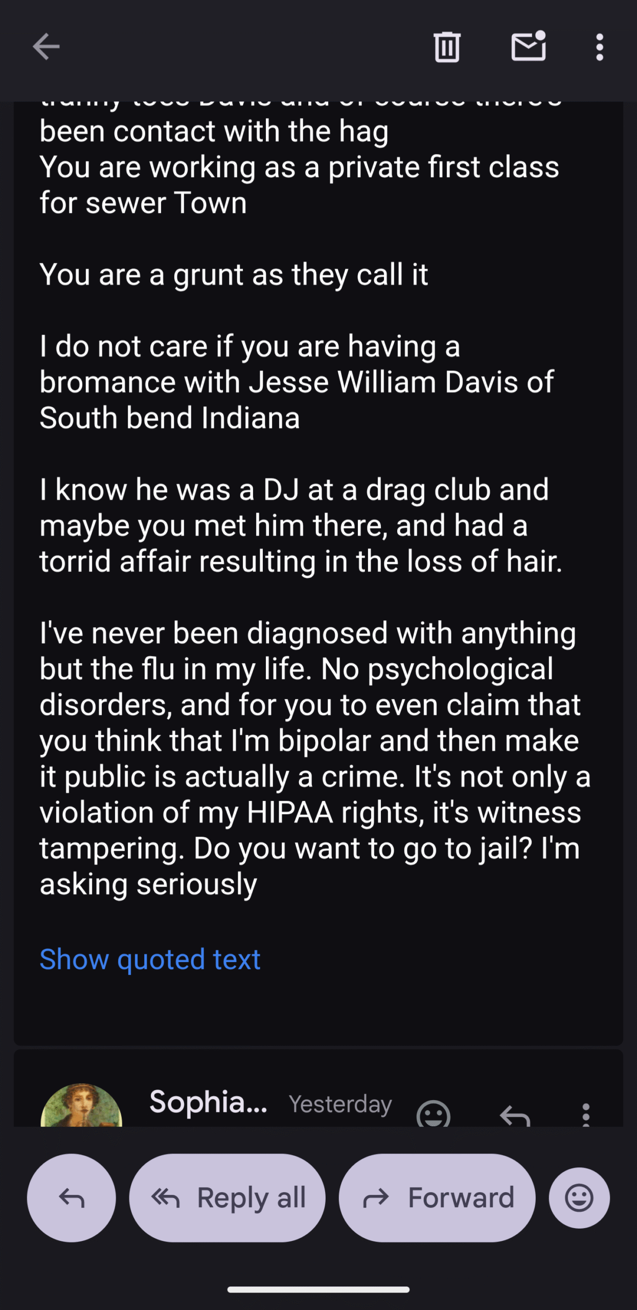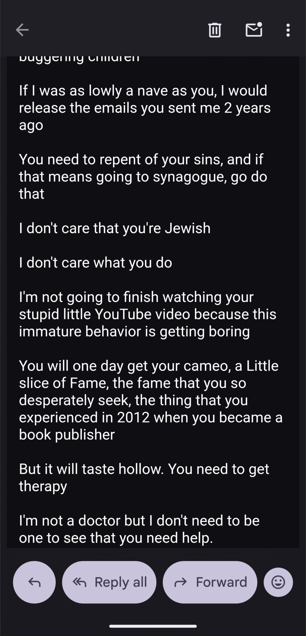 Her urging me to talk to Smokey da Clown (whose first name is Hunter) on the phone brought both Thomas Schoenberger and Gabe Hoffman to try and get me YouTube channel down after Thomas and Smokey got into an altercation in the chat of one of my videos and Thomas and Gabe claimed Smokey was MS13 and was making death threats to them.