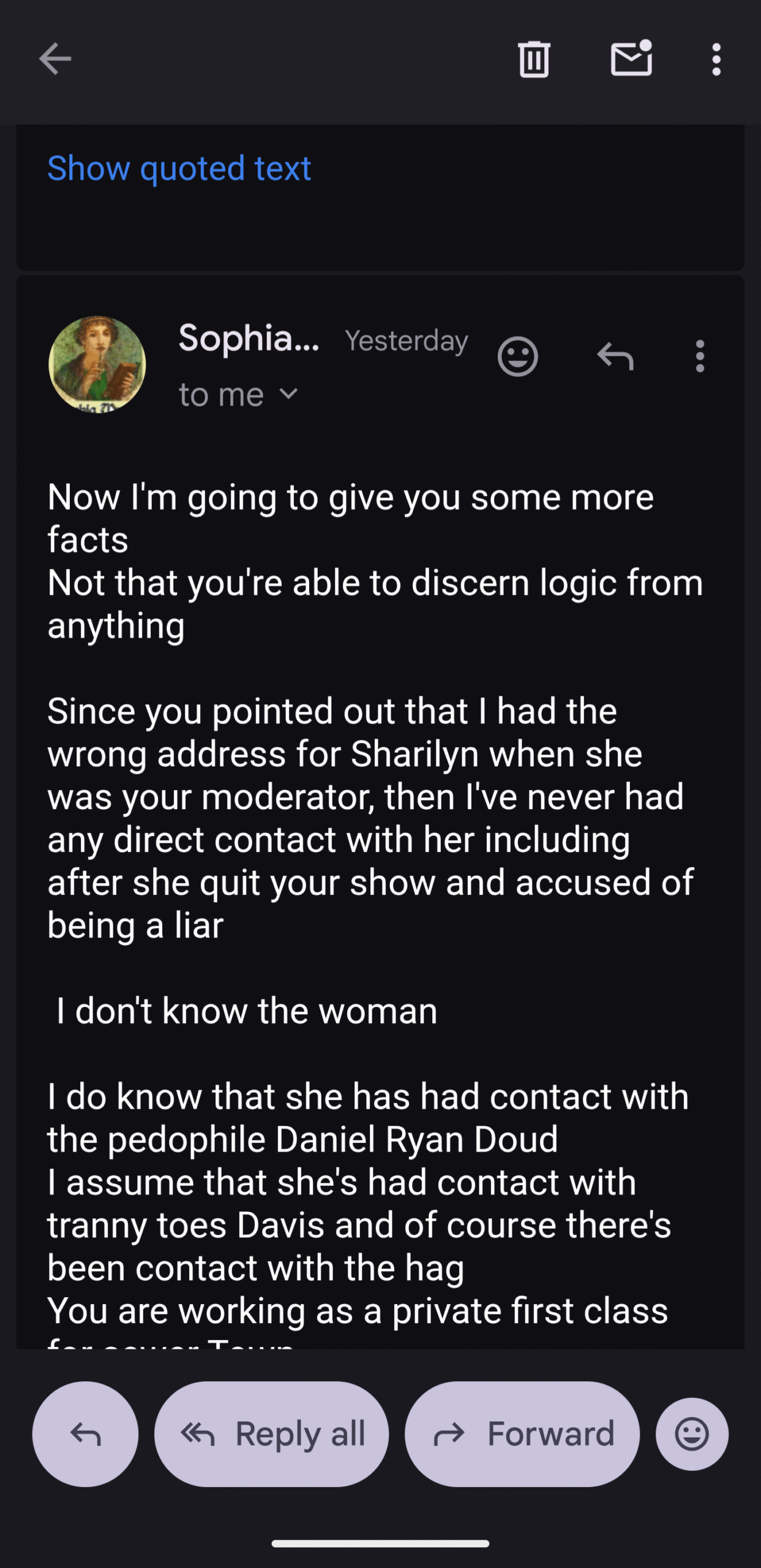 I call out Sharilyn because she is DIRECTLY CONNECTED to this Famalam group AND therefore my step mother Joanne C Shurter (not to mention Daniel Doud aka Pootie Twang, Geo Farnsworth aka Klownwaffen, Jessie Davis, Manuel Chavez aka DeFango, Cory Daniel aka Phoenix Enigma, Alecia Rae aka the Sicilian Witch, Gabe Hoffman, etc). This is the whole group that’s involved with child trafficking.