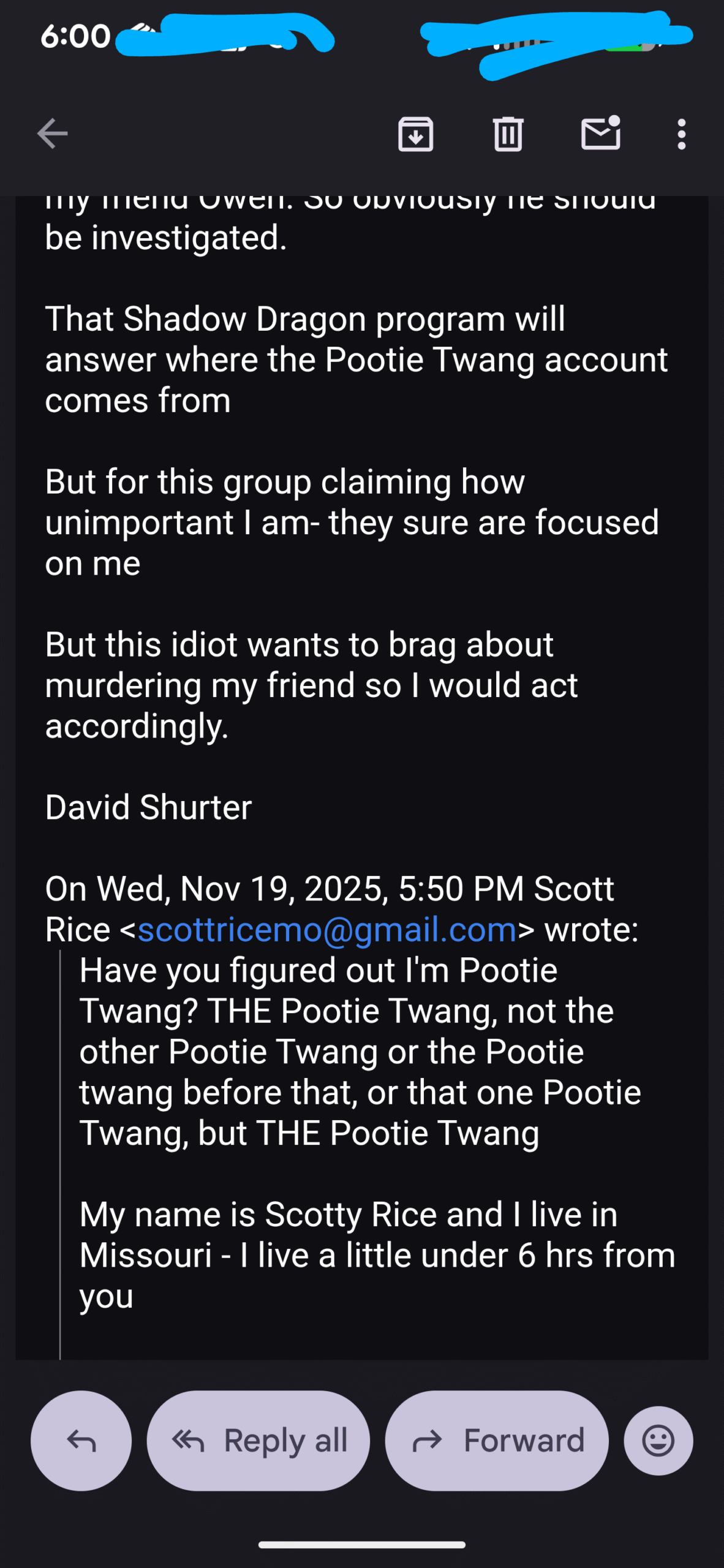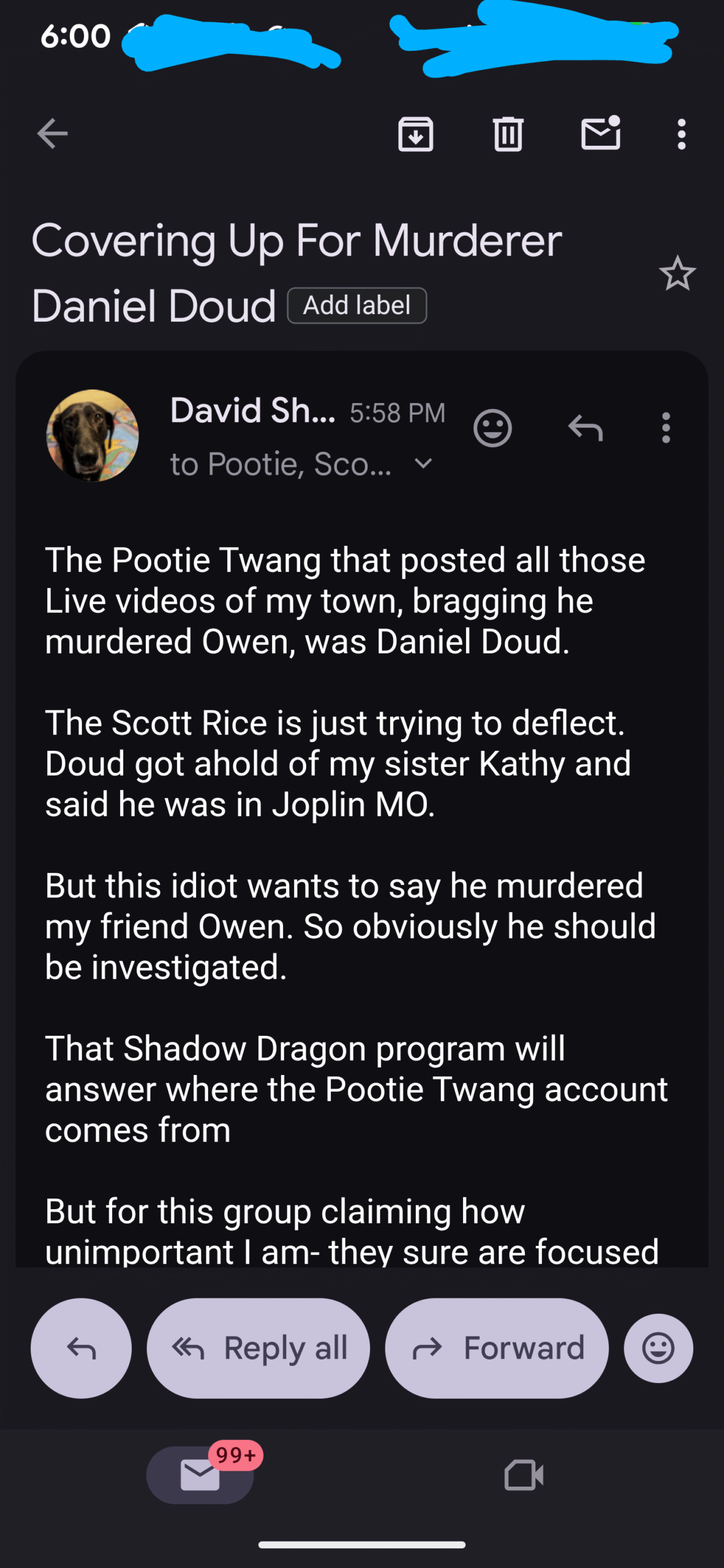 And then Daniel Doud had THIS idiot try to deflect from the fact that he killed my friend Owen…