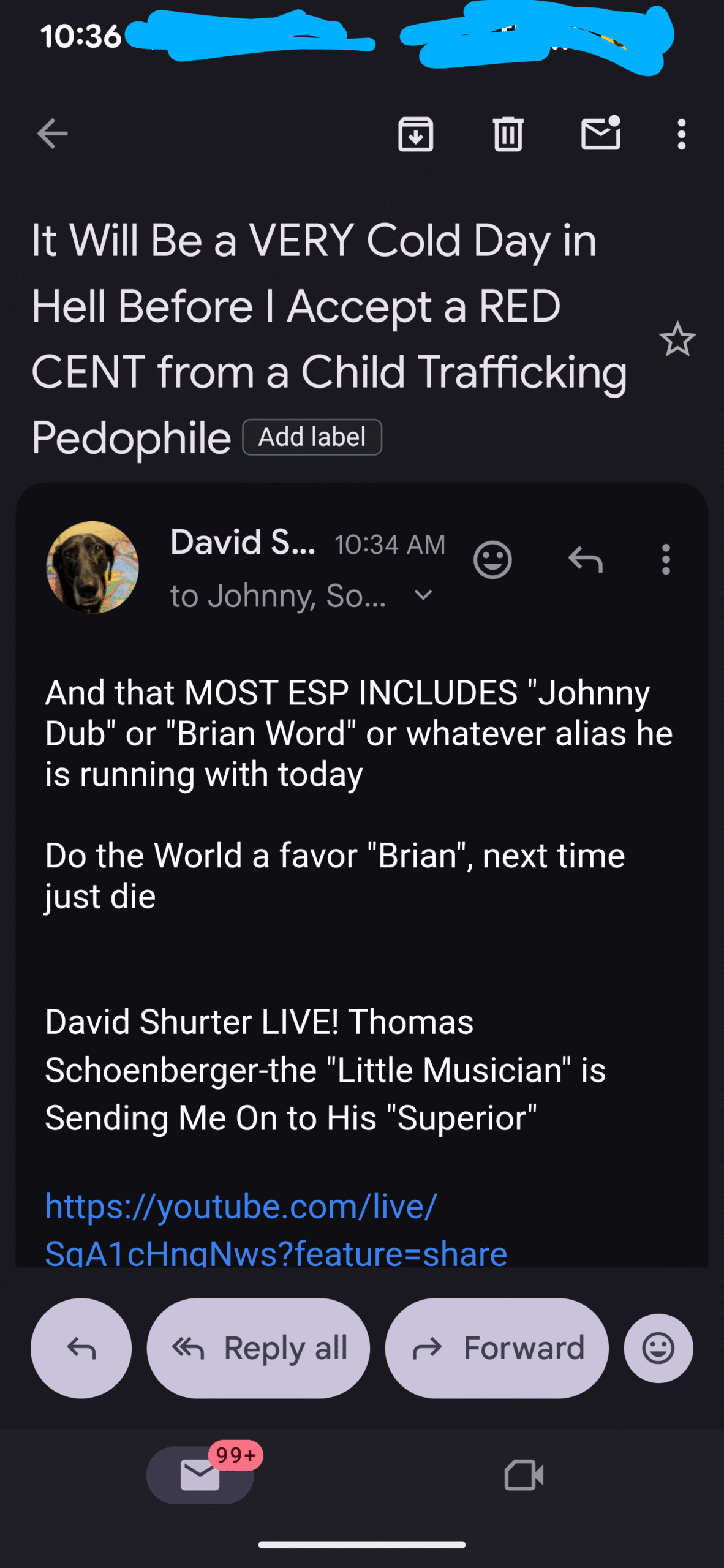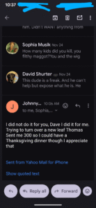 My Newest Live and The Emails “Johnny Dub” Was Sending Me During Laughing About Their Satanic Nazi Pedophile Operation