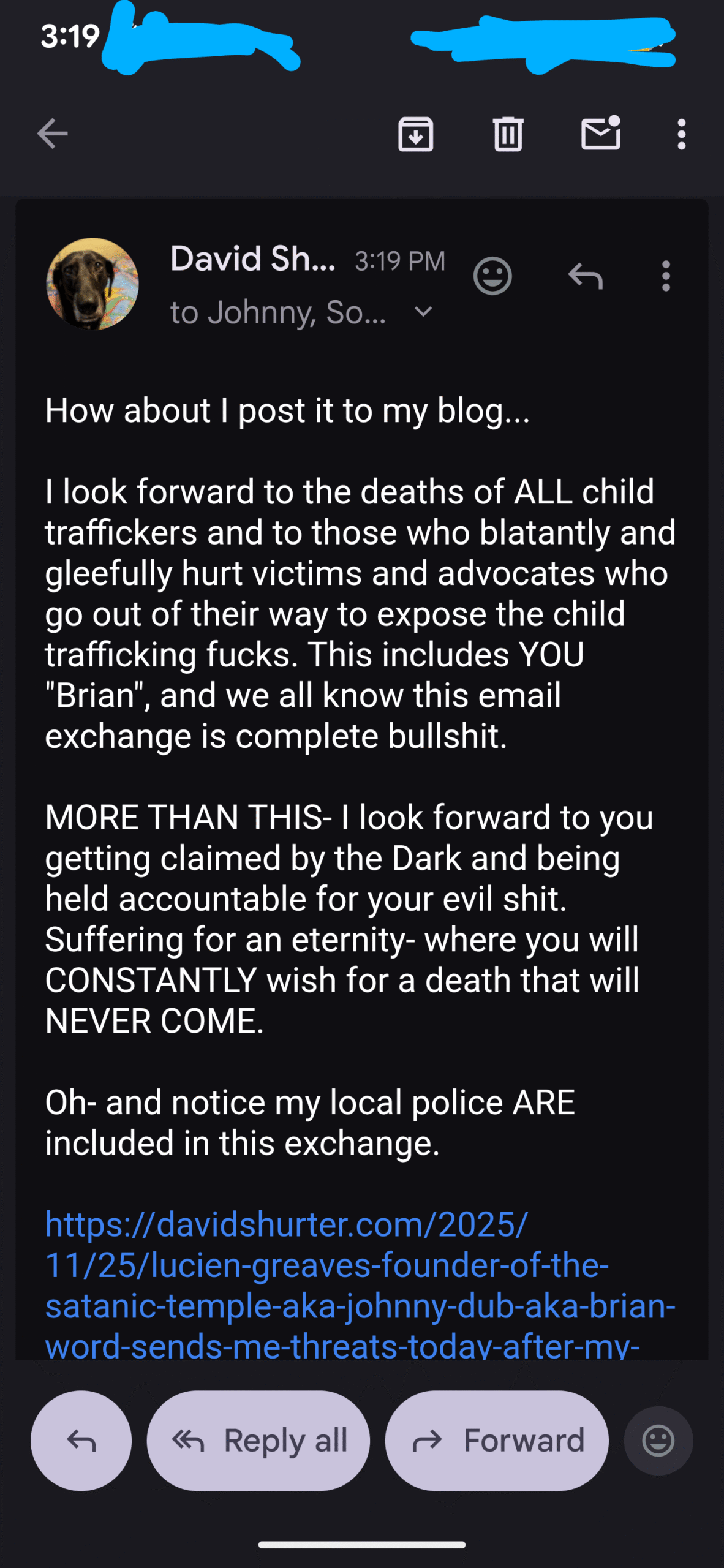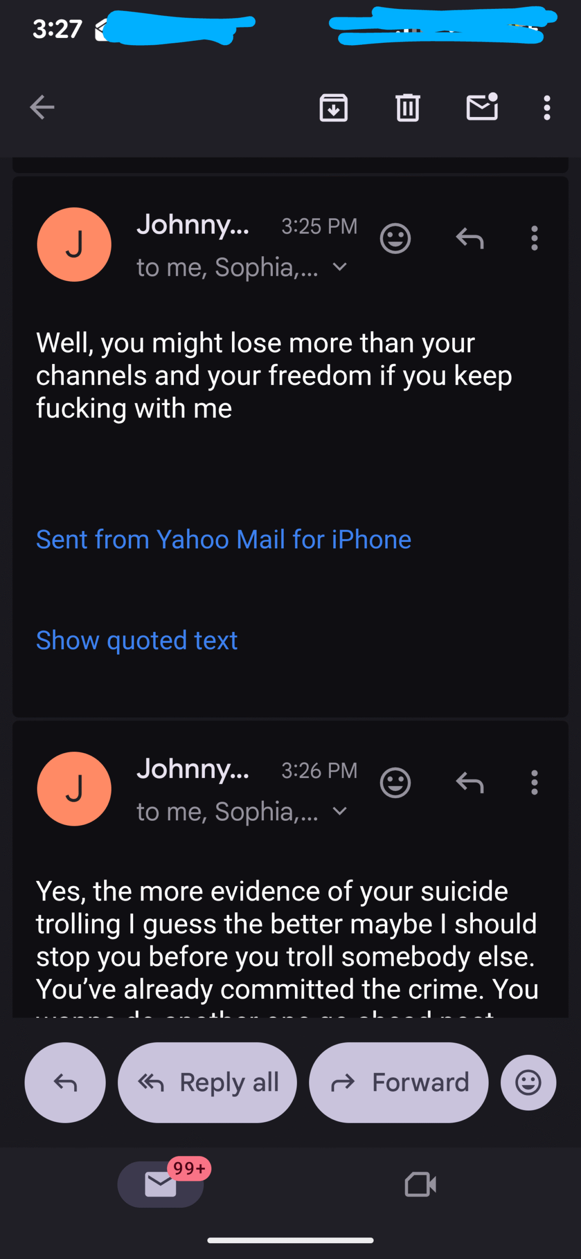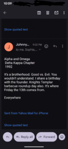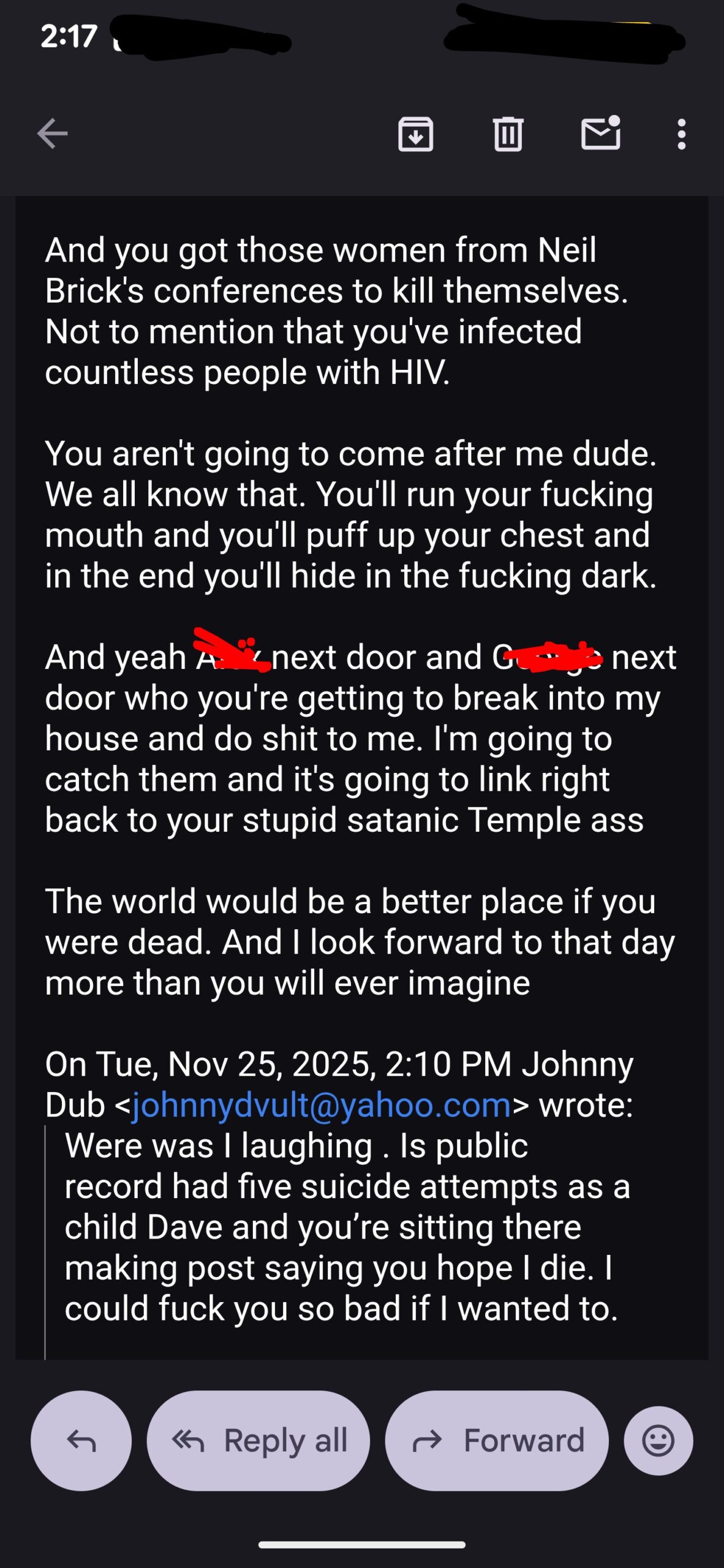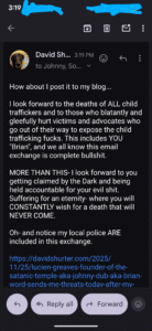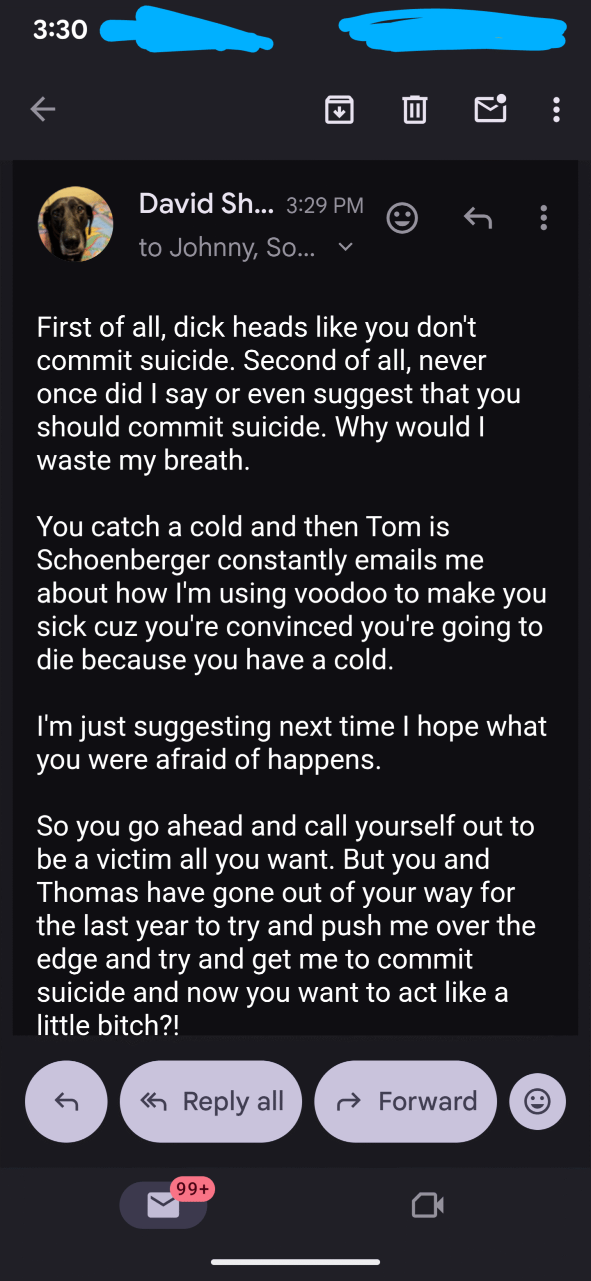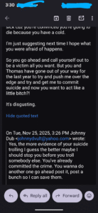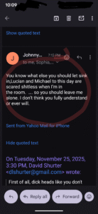 And this was the continuation of the email harassment I’ve dealt with for the past few days…