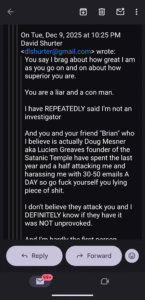 And this is “Johnny Dub” aka Doug Misicko aka “Doug Mesner” aka “Brian Word” aka “Johnny Killrush” aka “Lucien Greaves”- founder of the Satanic Temple along with Thomas Schoenberger (they been working in league with each other for YEARS)…