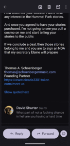 And this is how it started- with Thomas Schoenberger pretending he is someone completely different while still using his same email…