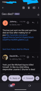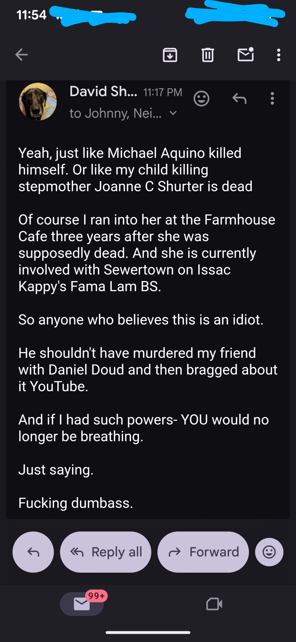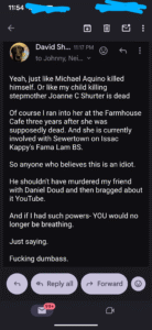 Col. Michael Aquino- founder of Temple of Set, Thomas Schoenberger, Gabe Hoffman, “Johnny Dub” aka Doug Misicko aka “Brian Word” aka “John Killeush” aka “Lucien Greaves”- founder of the Satanic Temple, Cory Daniel aka “the Phoenix Enigma” and his wife Alecia Rae aka “the Sicilian Witch”, Jessie Davis, Manny Chavez AKA “DeFango”, Daniel Doud aka “Pootie Twang” aka “American Witchcraft”, Geo “Farnsworth” (not his real name), Tere Joyce Randolph, who are all working in league with my child killing stepmother Joanne C. Shurter.