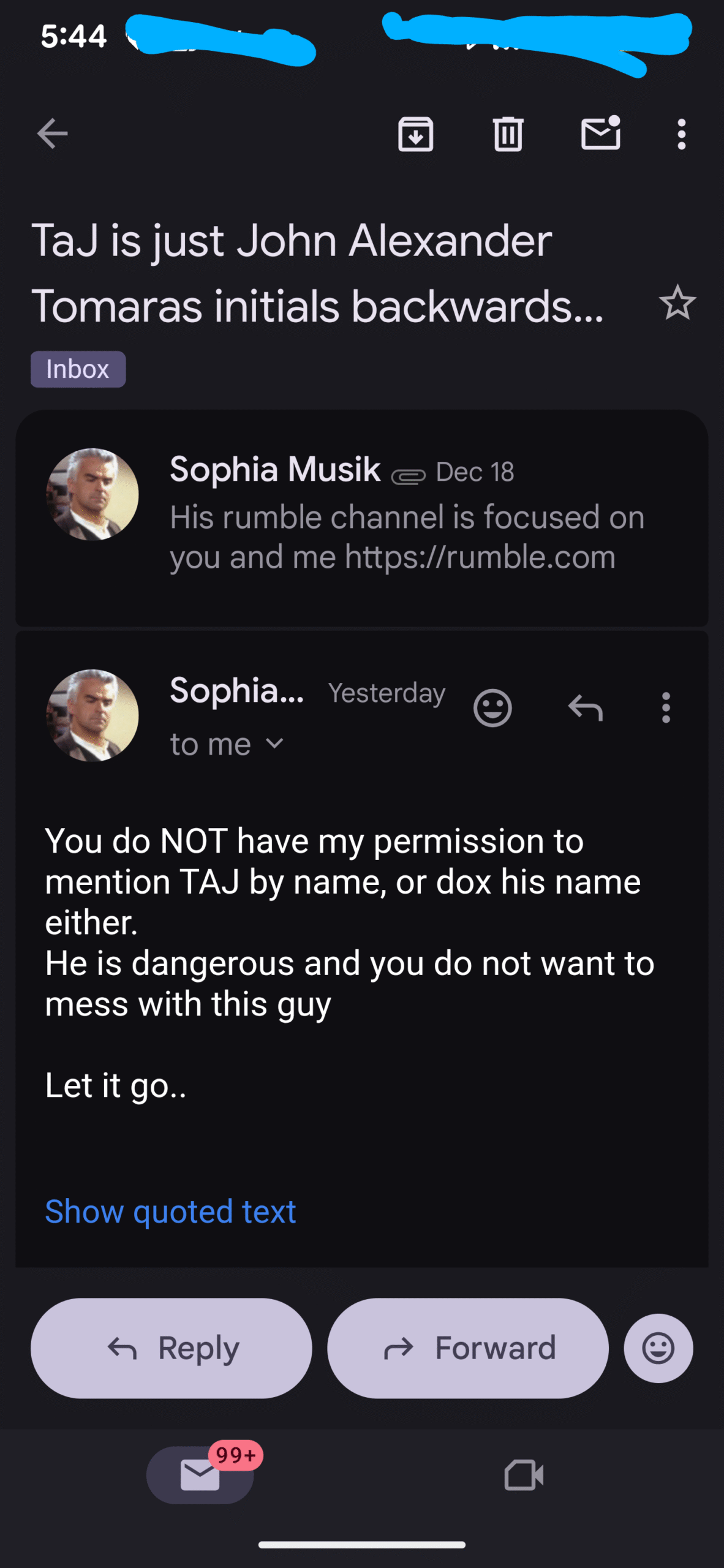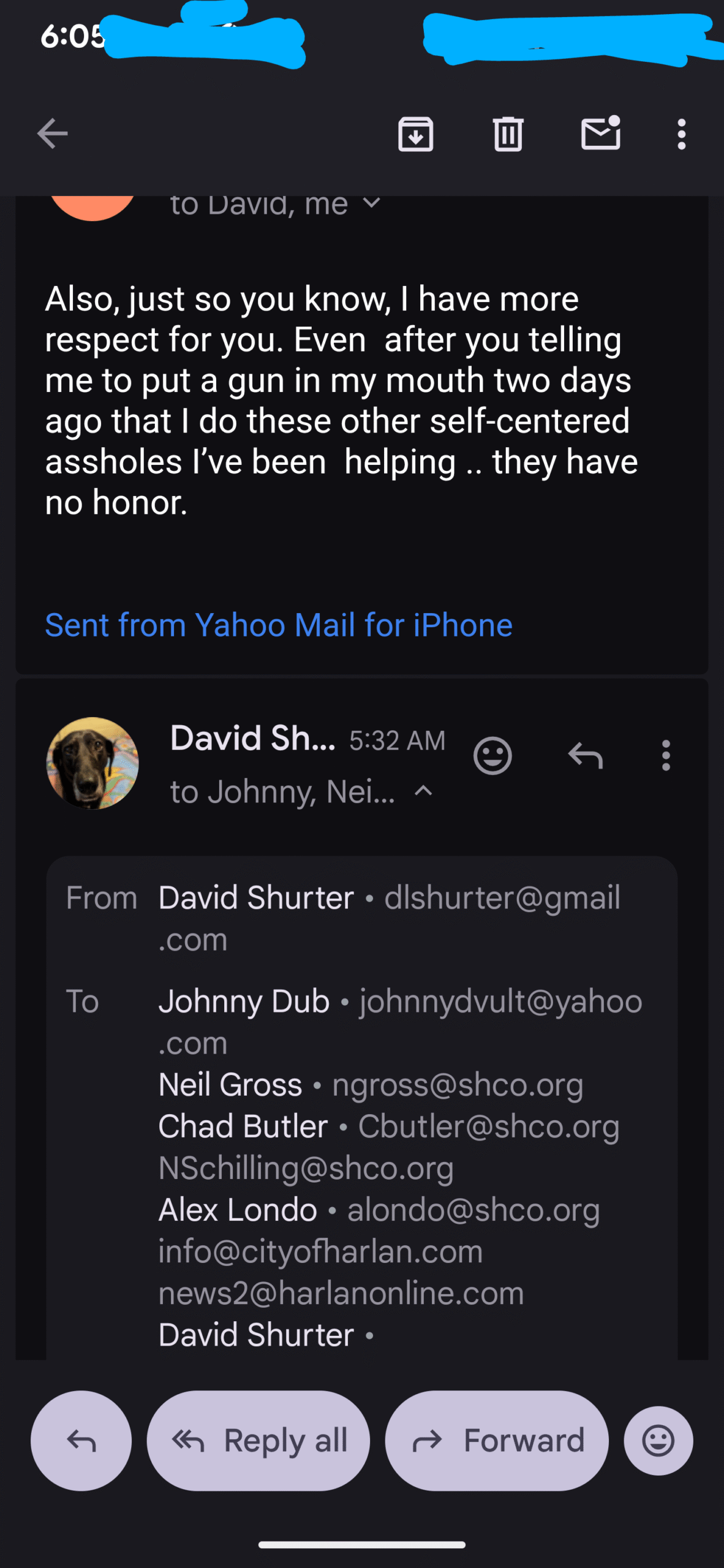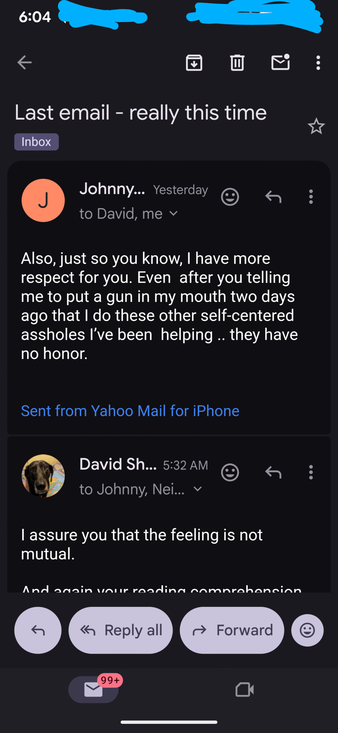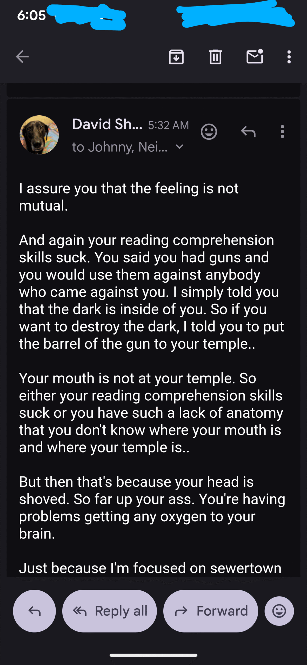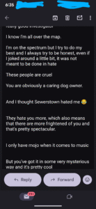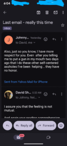 And then I received this from “Johnny Dub”. This is just ONE of his emails- but it’s the only one I responded too…