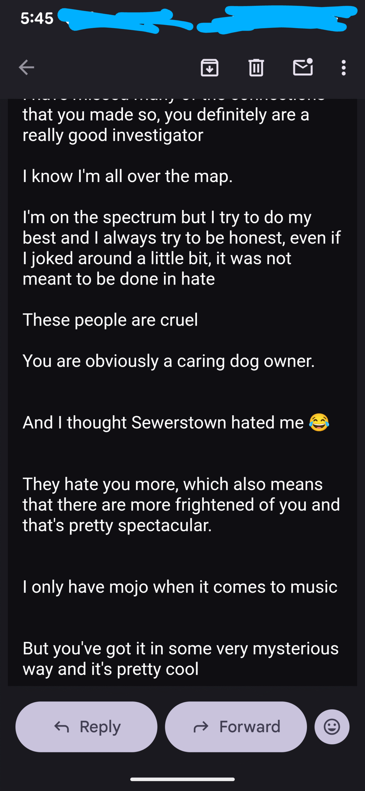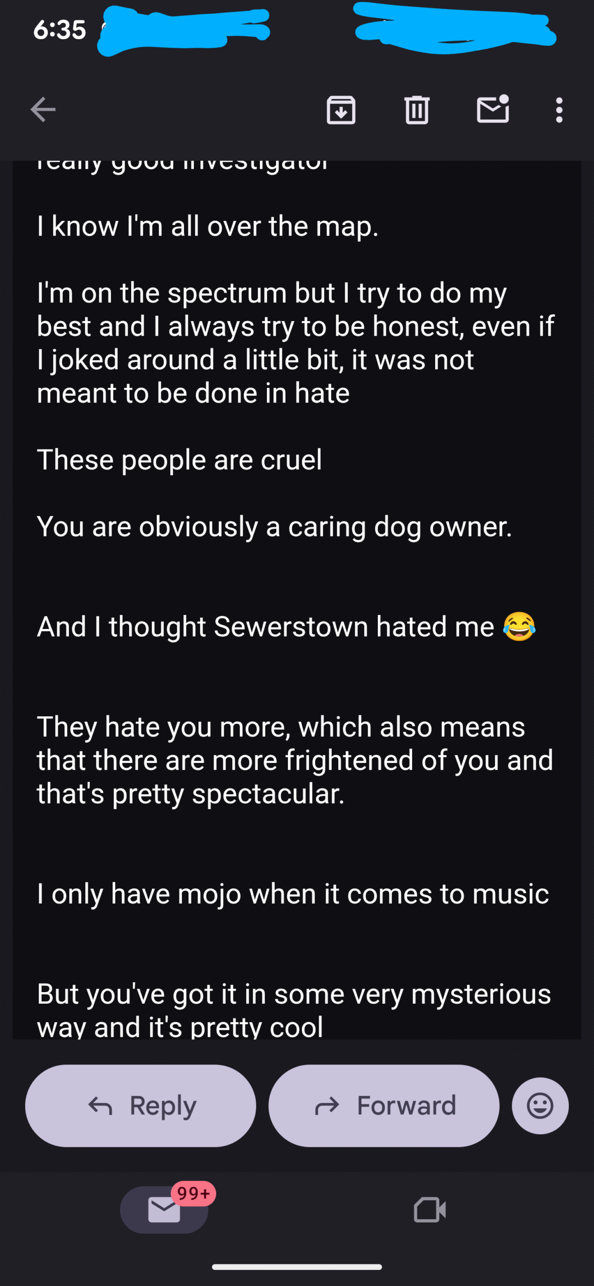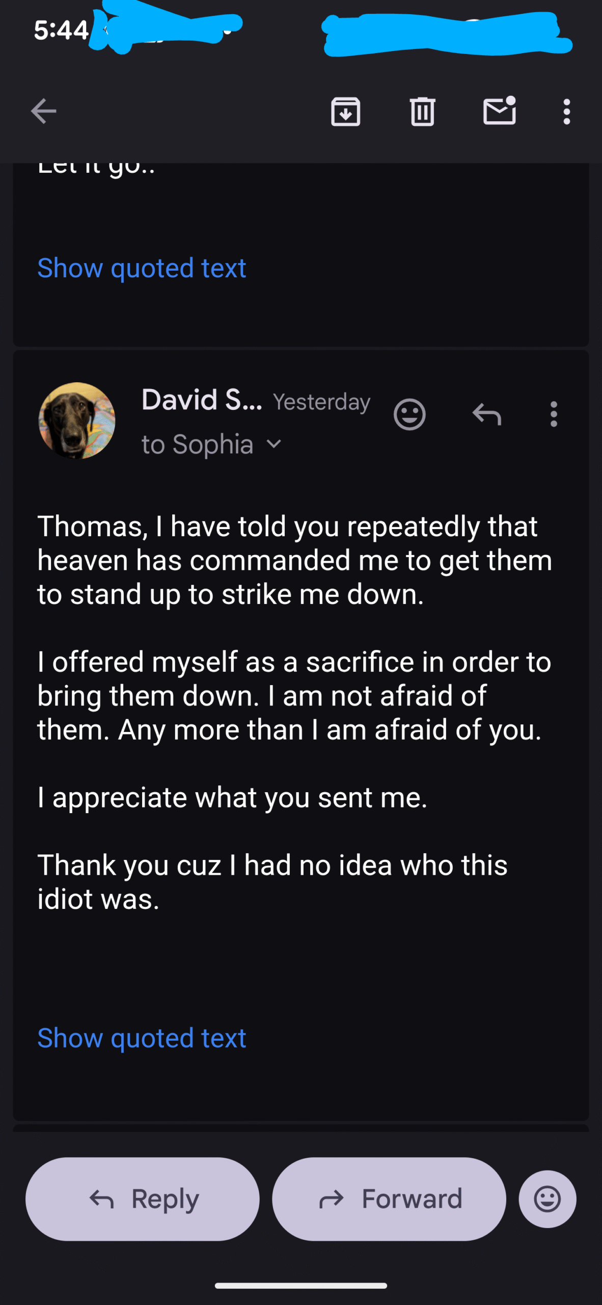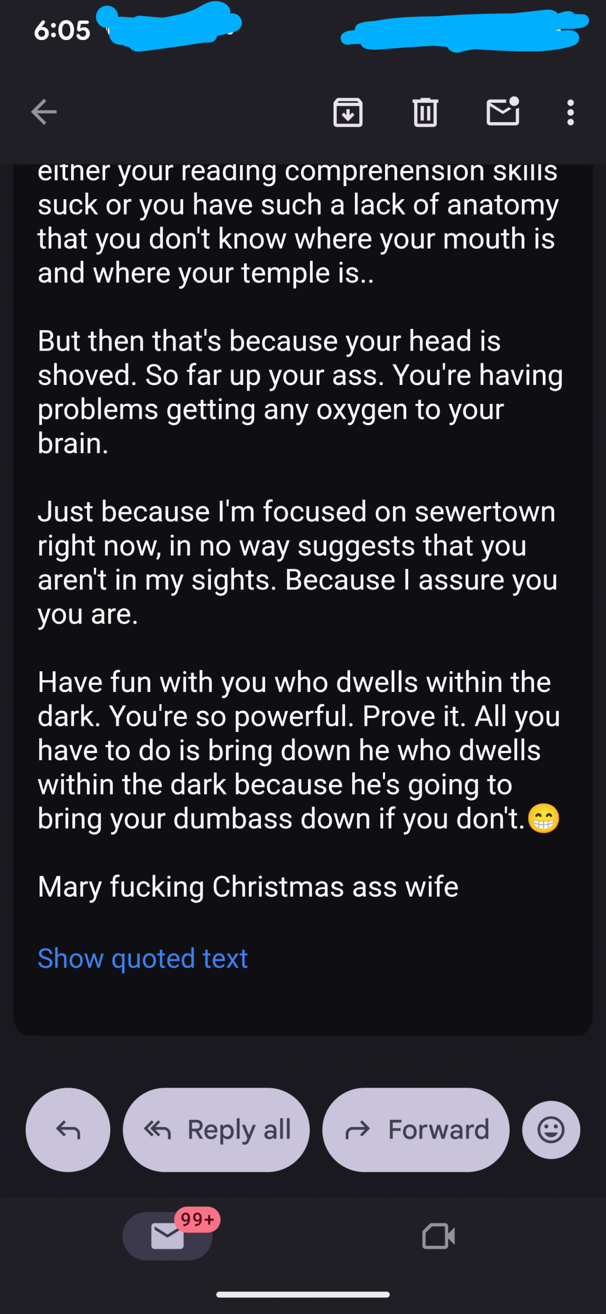 And then I received this from “Johnny Dub”. This is just ONE of his emails- but it’s the only one I responded too…