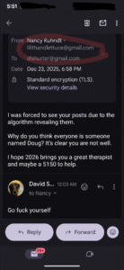 And Doug and the group he’s involved with- their entire focus is to shut me up about my family’s involvement with trafficking BOYS- as well as abducting and murdering them.
