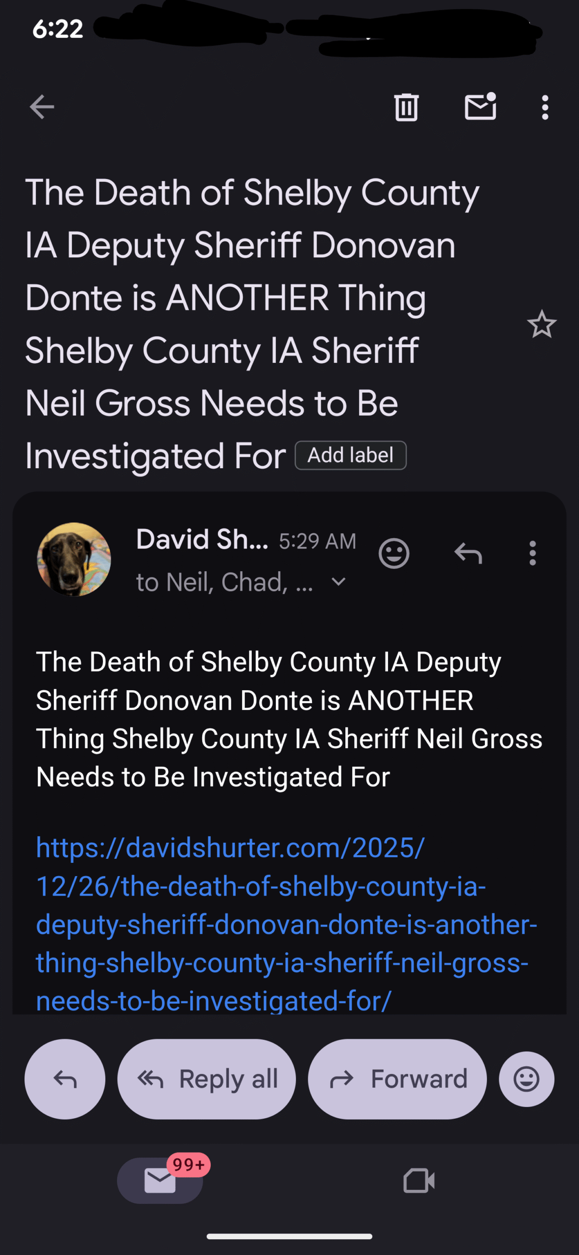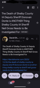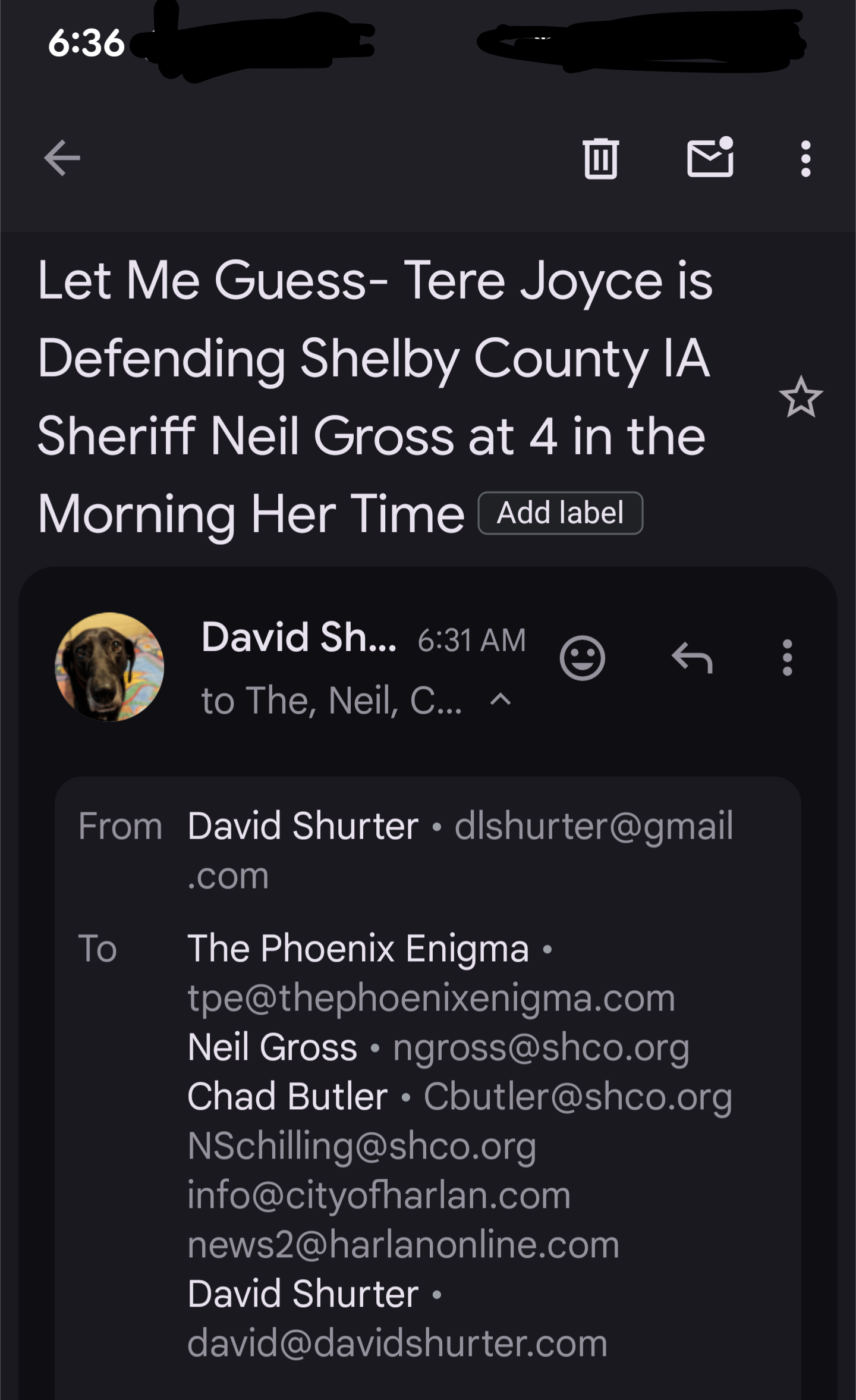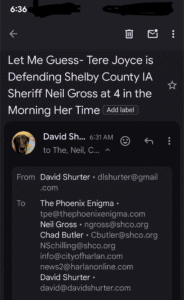 Shelby County IA Sheriff Neil Gross is protecting and hiding his OWN criminal enterprise, let alone the pedophiles criminal enterprise I’m fighting.